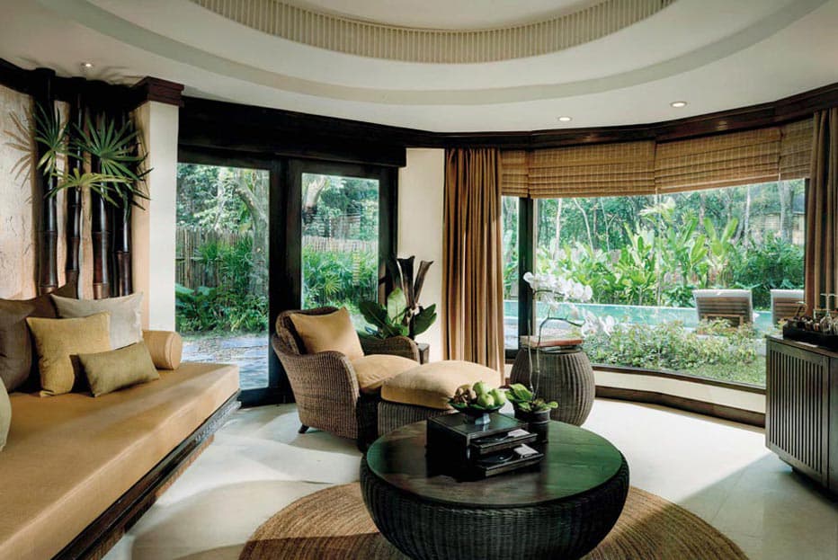 Отель Rayavadee расположен в самом центре живописного полуострова Прананг на краю национального морского парка Краби, в районе, который славится своей природной красотой, богатой флорой, фауной, морскими формами жизни. Курорт был построен более двух десятилетий назад с идеей жить, не нарушая баланс этой уникальной среды. Павильоны и виллы уютно устроились среди множества деревьев отеля, ни одно из которых не было срублено во время строительства. Здания были спроектированы так, чтобы гармонично вписаться в природное окружение.
