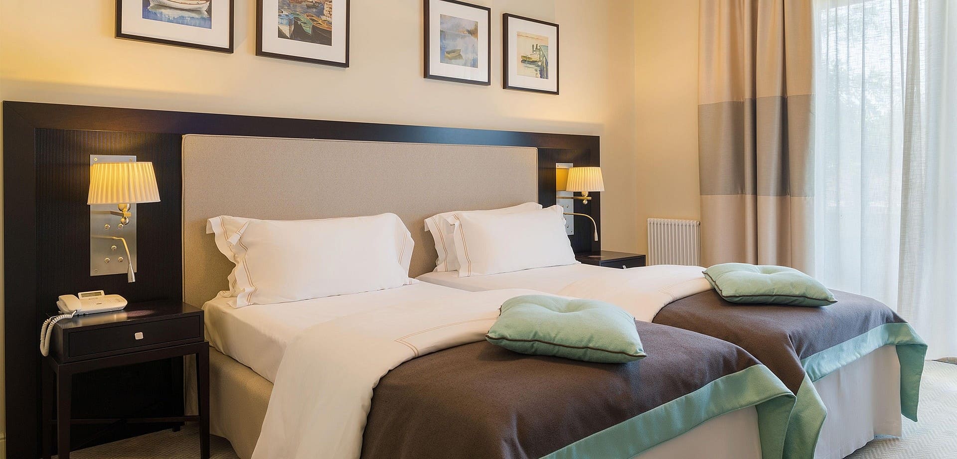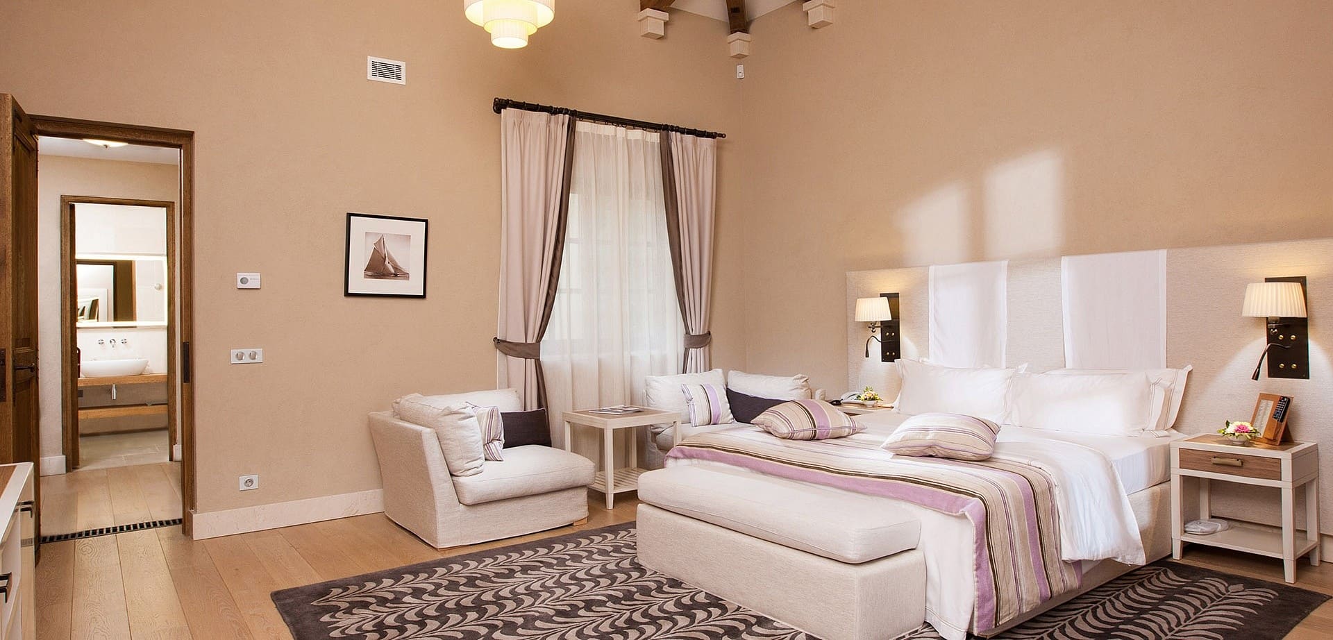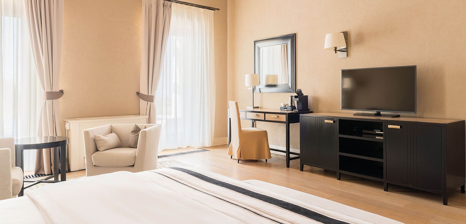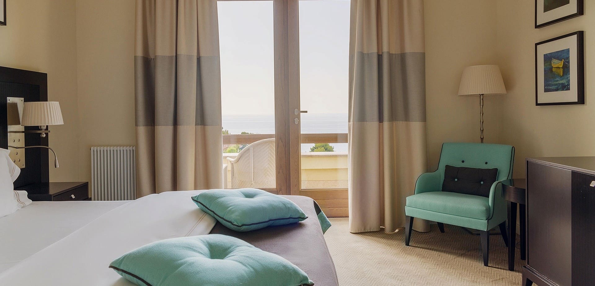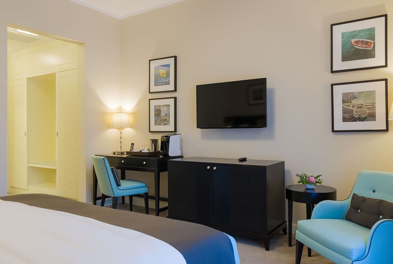 Классический А/В (26 кв.м.) Номера расположены на вилле «Анюта». Вид на море (для номеров «Классический В») и парк (для номеров «Классический А»). В номере: двуспальная / 2 раздельных кровати, балкон, гардеробная.