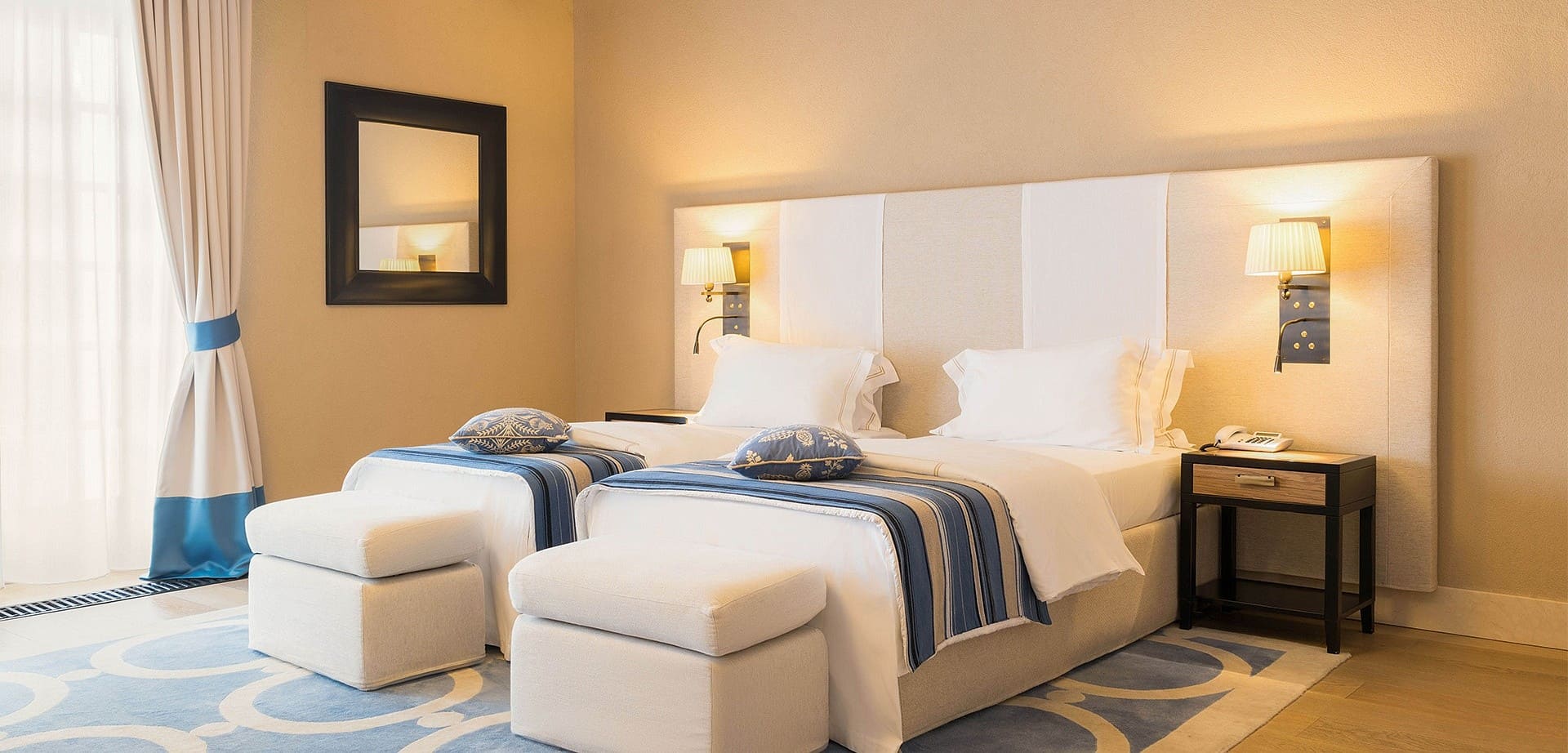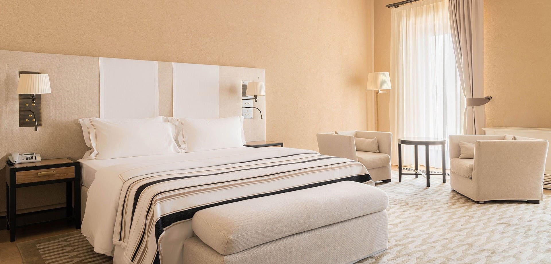 Апартаменты (122 кв.м.) Апартаменты — трехкомнатные номера с отдельным входом, расположенные в самом центре отеля. В номере: двуспальная кровать. Ванная: ванна, подогреваемый пол, биде, фен, телефон и весы.