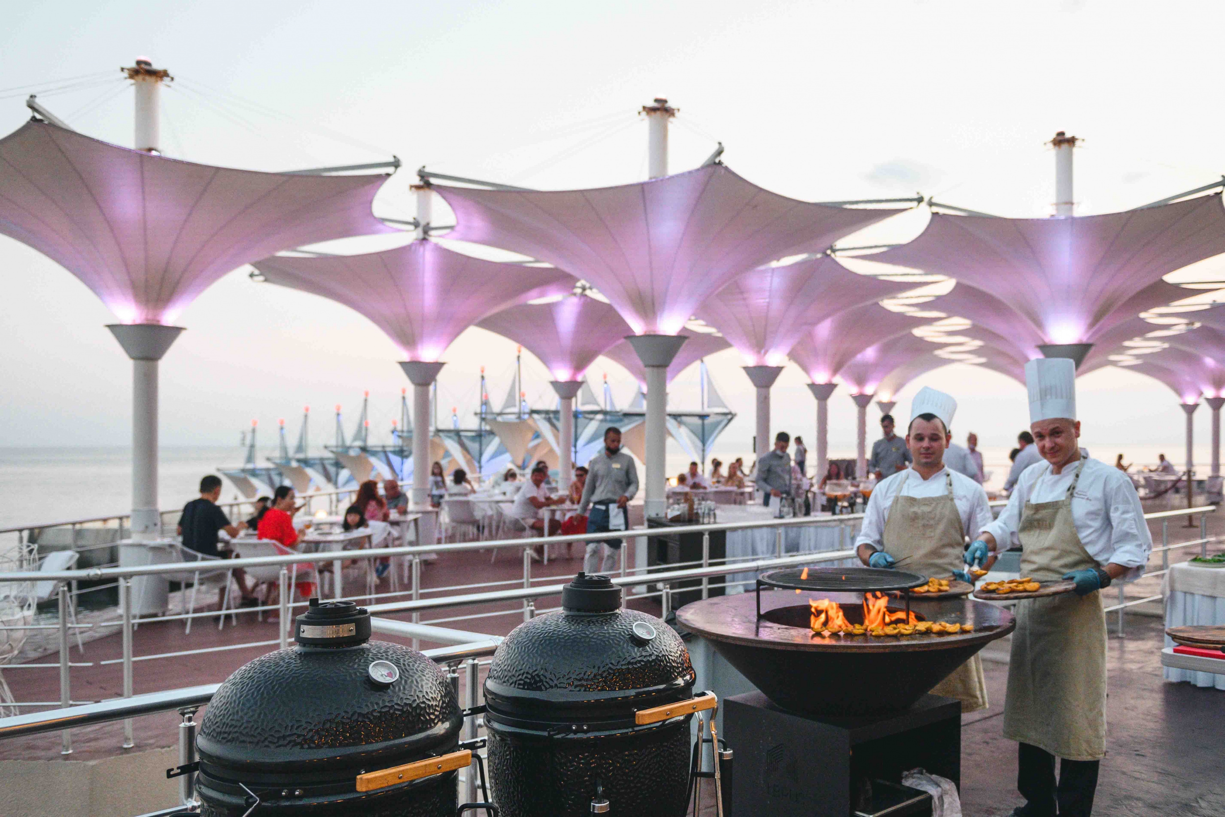 Вилла «Чайка» (340 кв.м.) Большая 2-этажная вилла. В номере: система климат контроля, полы с подогревом, плазменные ТВ гостиной и каждой спальне, сейфы в каждой спальной комнате, оборудование на кухне: холодильник, плита, кофе машина, посуда. 1 этаж — 2 спальни с двуспальными кроватями, 2 спальни с односпальными кроватями, 2 ванных комнаты с ванной/душем, выход на террасу и зеленую лужайку. 2 этаж — гостиная, столовая с камином, кухня, гостевой санузел, вид на море, выход на террасу к открытому бассейну. Ванная: душ, биде, фен и весы в каждой ванной комнате.
