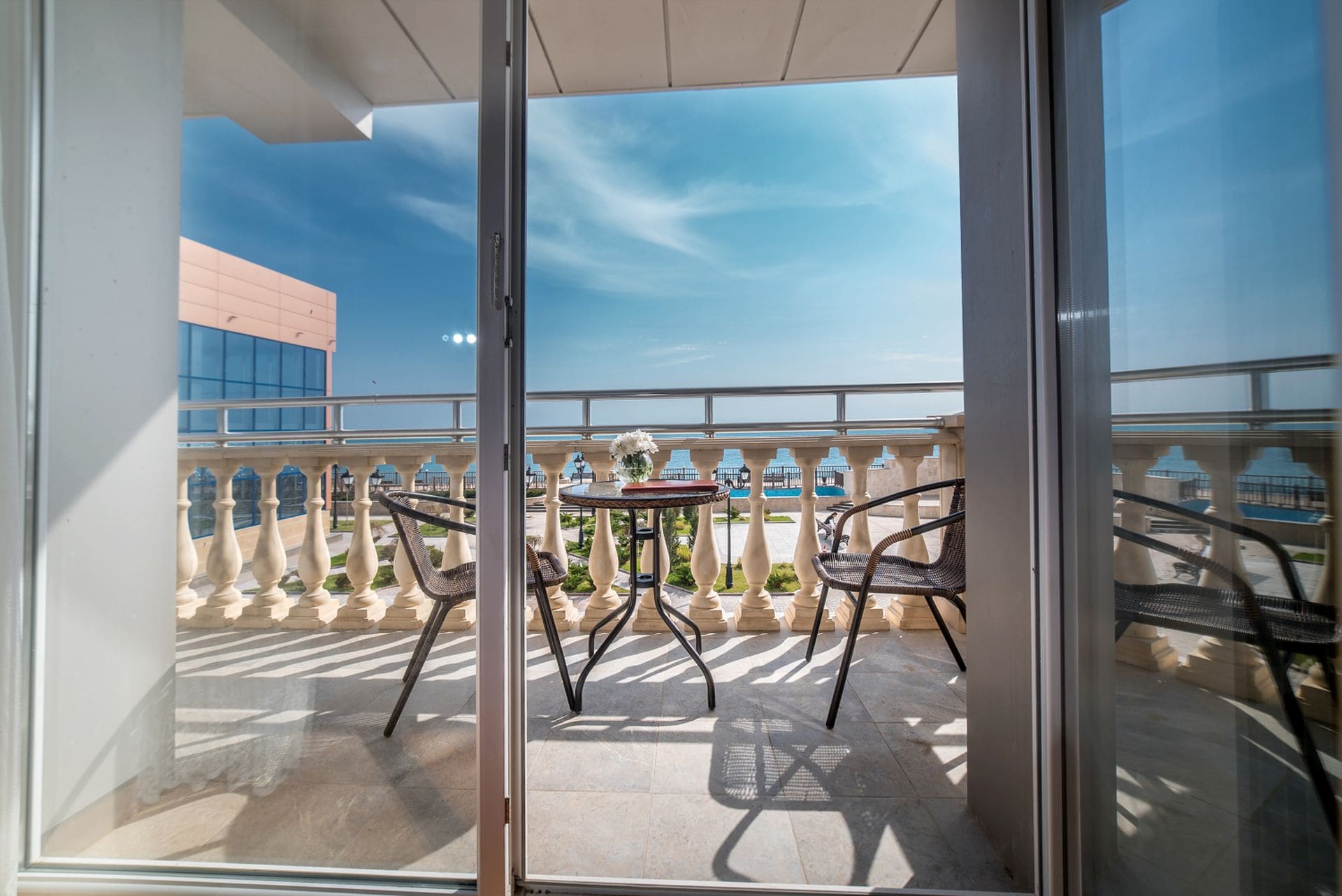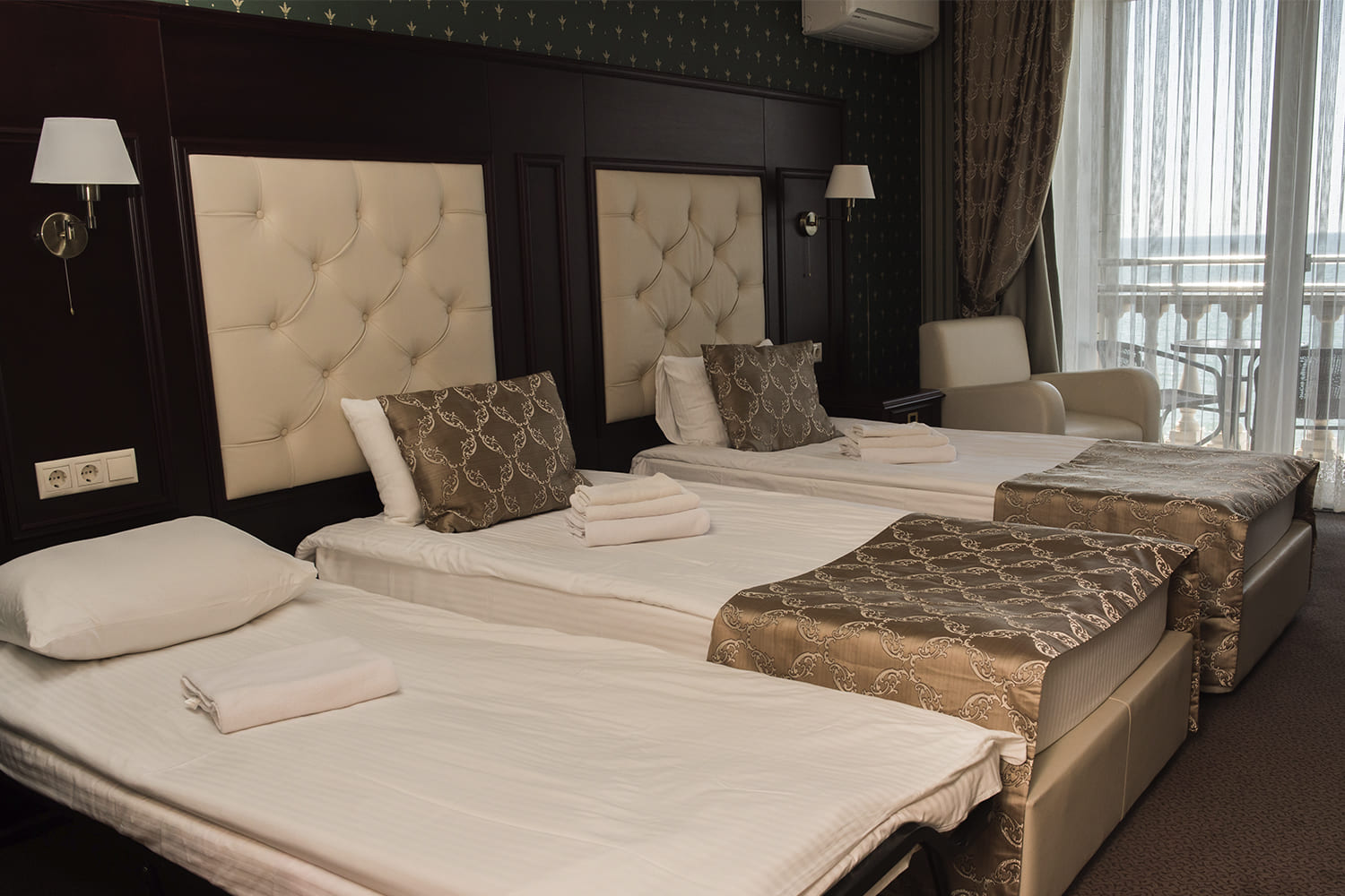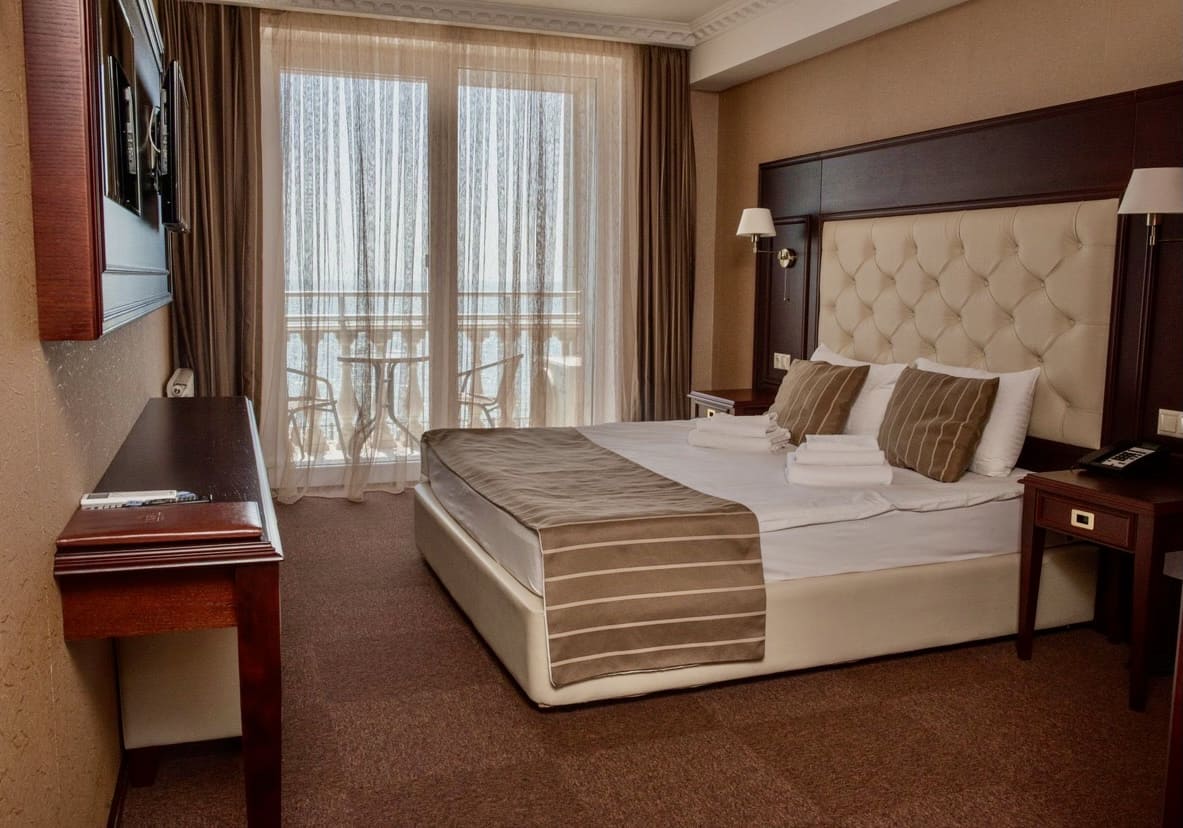 Улучшенный номер Номер повышенной комфортности площадью от 30 кв. м, сочетающий в себе современный интерьер в стиле «Неоклассика» и безумно красивый панорамный вид на море. Все номера имеют выход на балкон, где вы можете уютно разместиться в кресле с чашечкой кофе и насладиться изумительными морскими видами. Отличный вариант для размещения до двух взрослых гостей и одного ребенка на дополнительной кровати.