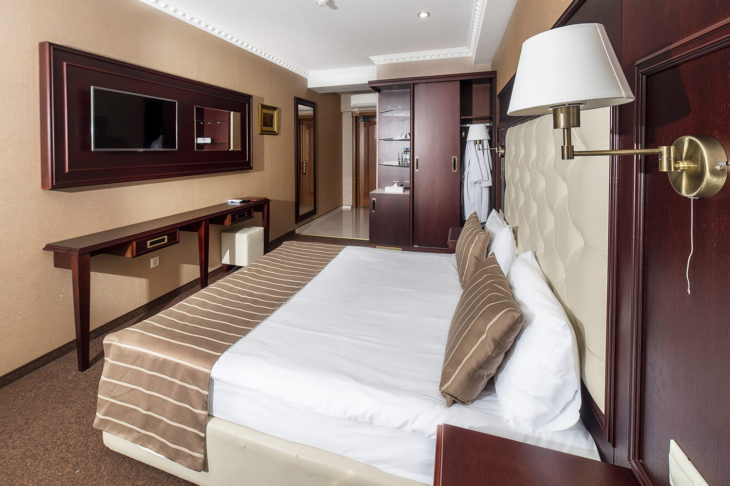 Стандартный номер Комфортабельный номер площадью от 20 кв. м, сочетающий в себе современный интерьер в стиле «Неоклассика» и вид на озеро. Большинство номеров имеют выход на балкон, с мебелью для вашего отдыха. Отлично подойдет для размещения одного или двух взрослых гостей.