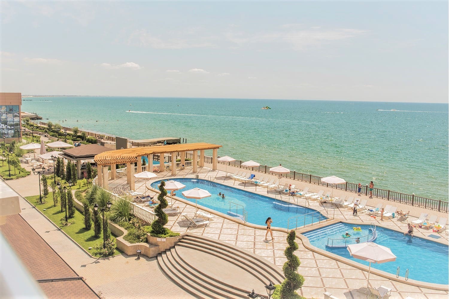 Полулюкс Стильный номер «Полулюкс» площадью от 40 кв. м, включающий в себя спальную и гостиную комнаты, великолепно подойдет для истинных ценителей комфорта, современного дизайна и незабываемых видов. Уютно расположившись в креслах вы сможете отдохнуть всей семьей после жаркого дня и полюбоваться панорамным видом на море или озеро. Номер отлично подходит для размещения до двух взрослых гостей и одного или двух детей на дополнительных кроватях.