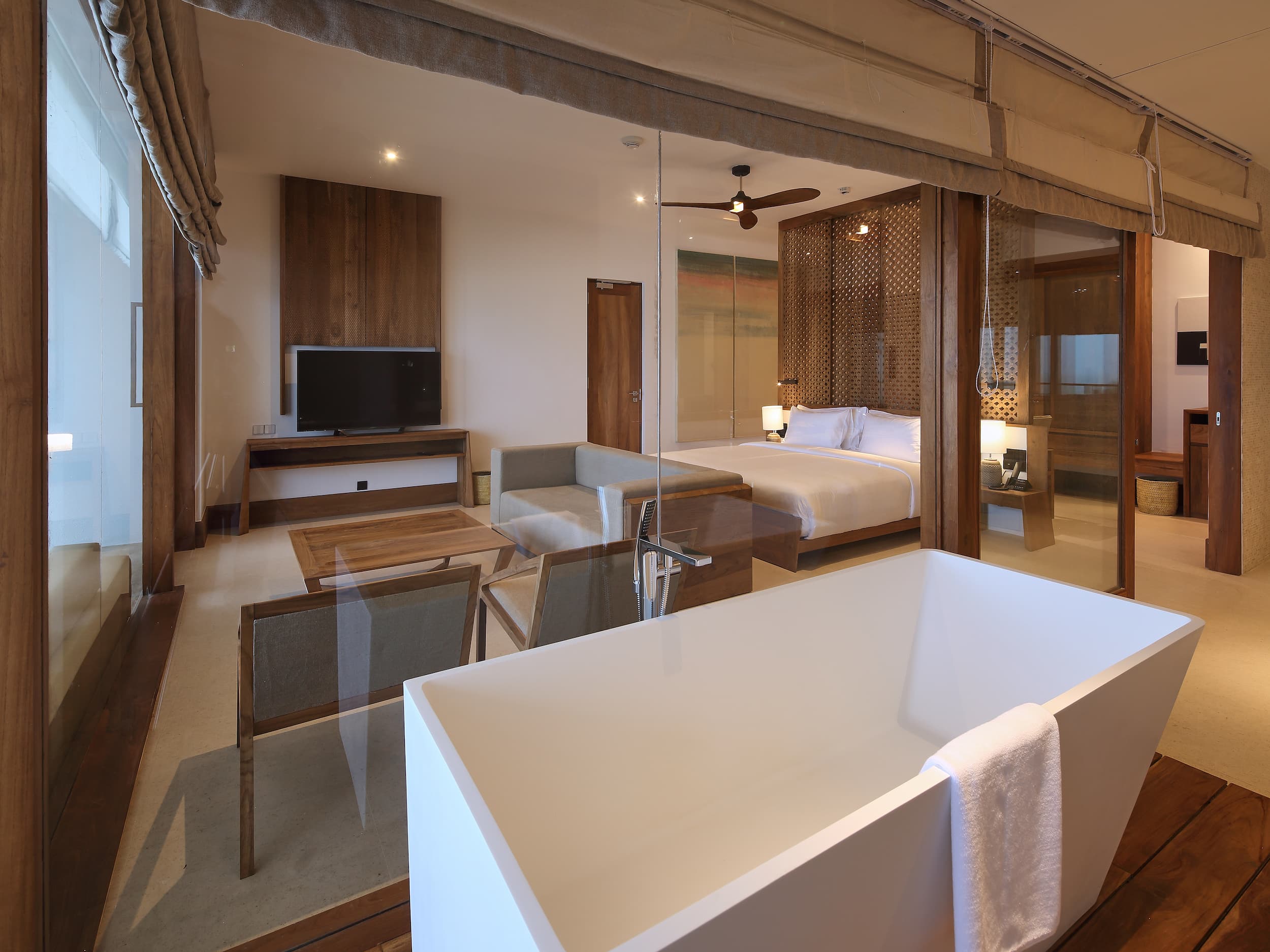 Riff Design Suite (83 кв. м). Номера с панорамным видом на океан, балкон, двуспальная кровать, зона гостиной, дополнительно в номере есть кофе-машина, предлагаются услуги дворецкого, есть соединенные номера с категорией Deluxe Ocean View.