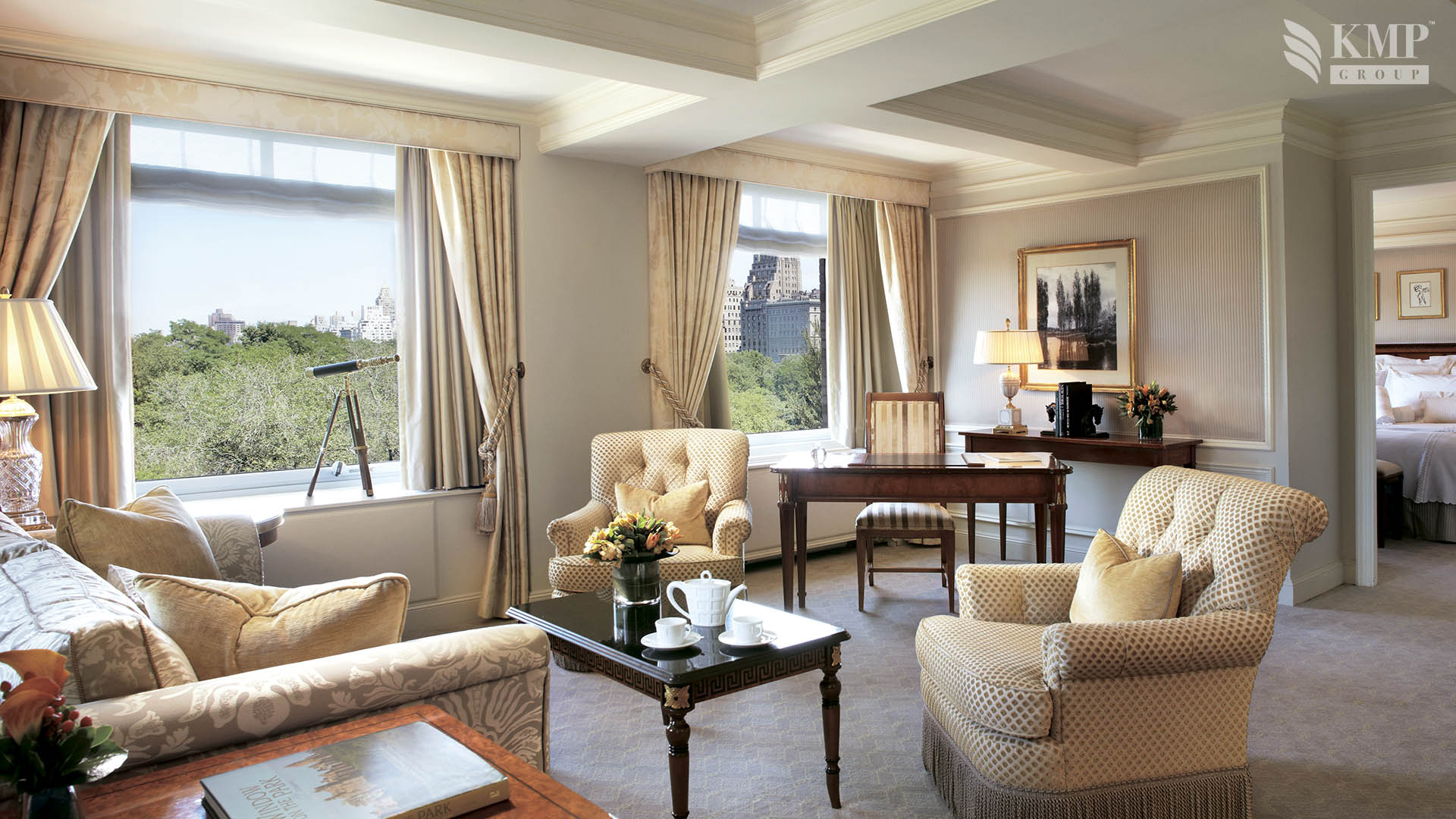 Central park suite (176 кв. м): прихожая, 2 гостиные, столовая с обеденным столом на 8 персон, кладовая, спальня, ванная комната с ванной и душевой кабиной, гостевой туалет. Расположен на 3 этаже. Вид на Центральный парк. Возможно присоединение дополнительной спальни и ванной комнаты.