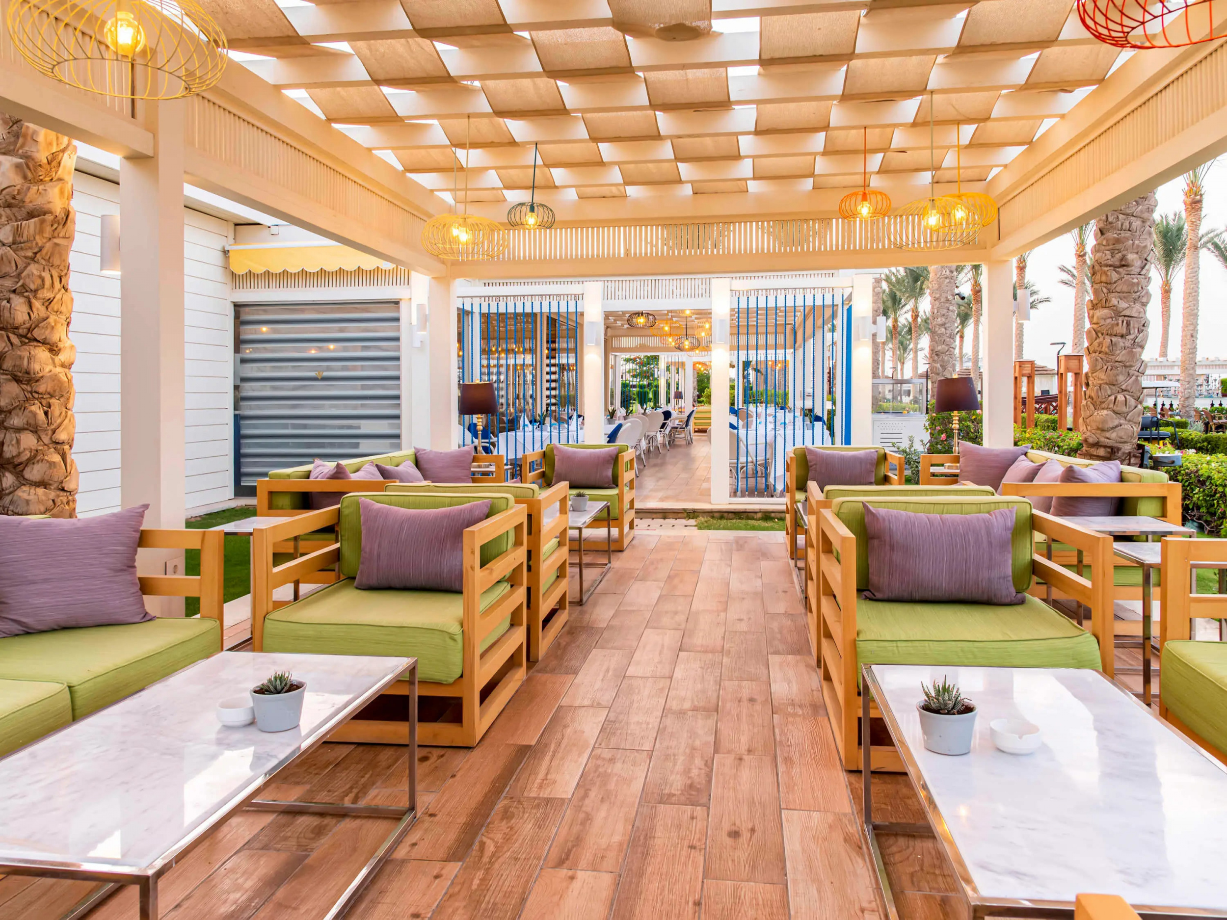 В ресторанах Lalezar, Sakura и Hatmehit подают традиционные блюда турецкой и японской кухни, а также блюда из морепродуктов. В ресторане Callaina с обслуживанием по меню готовят блюда итальянской кухни, а в ресторане Papyrus — блюда восточной кухни. Кроме того, гости могут посетить ресторан индийской и китайской кухни. В курортном отеле проводятся вечерние развлекательные мероприятия. Для гостей работает ночной клуб, дискотека и пляжный ночной клуб на открытом воздухе.