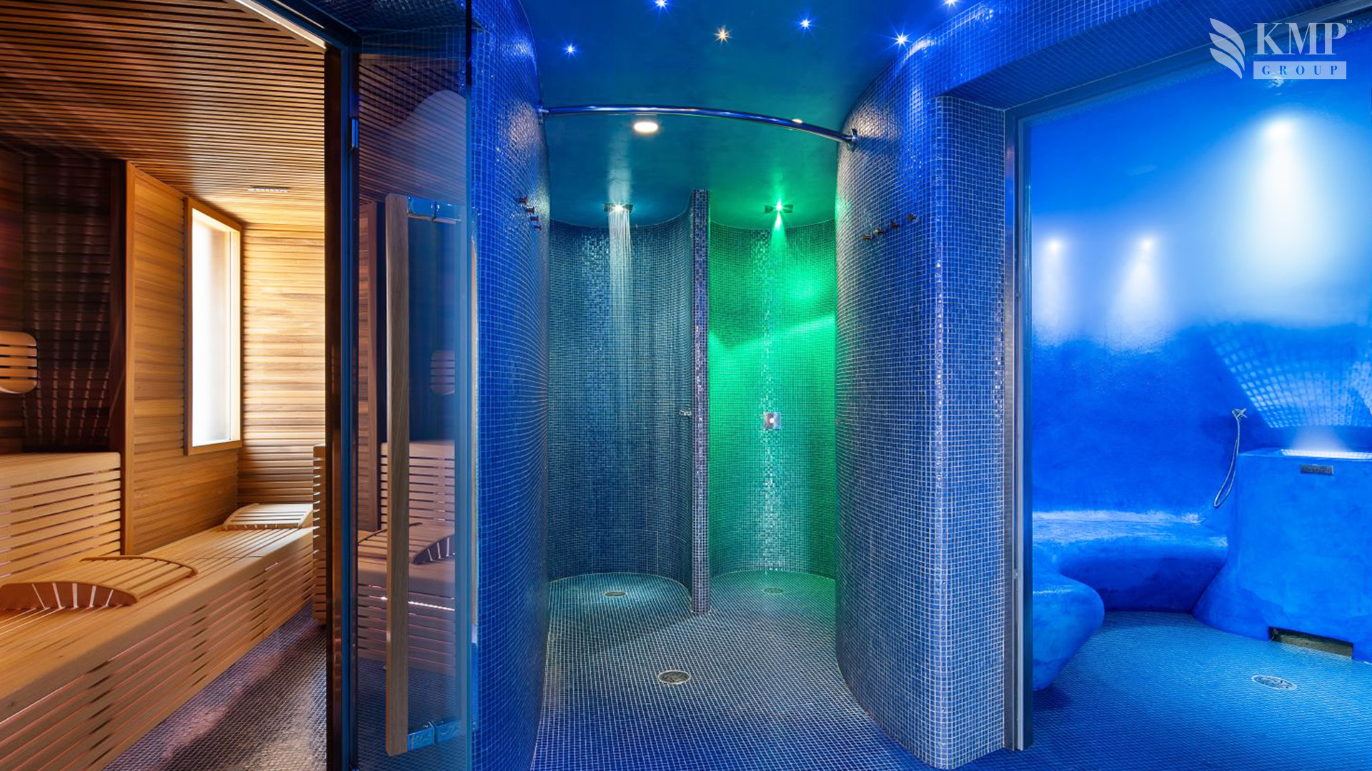 Unique presidential suite (95 кв. м). Терраса (25 кв. м) с джакузи на открытом воздухе, гостиная, столовая (стол на 6 персон), 2 спальни, 3 ванные комнаты с душевыми кабинами с функцией «тропический дождь». Дополнительно: спутниковое телевидение, факс, фотокопир. Собственный лифт. Вид на сад и море. Расположен на последнем этаже. Возможно объединение с номером Unique royal suite.