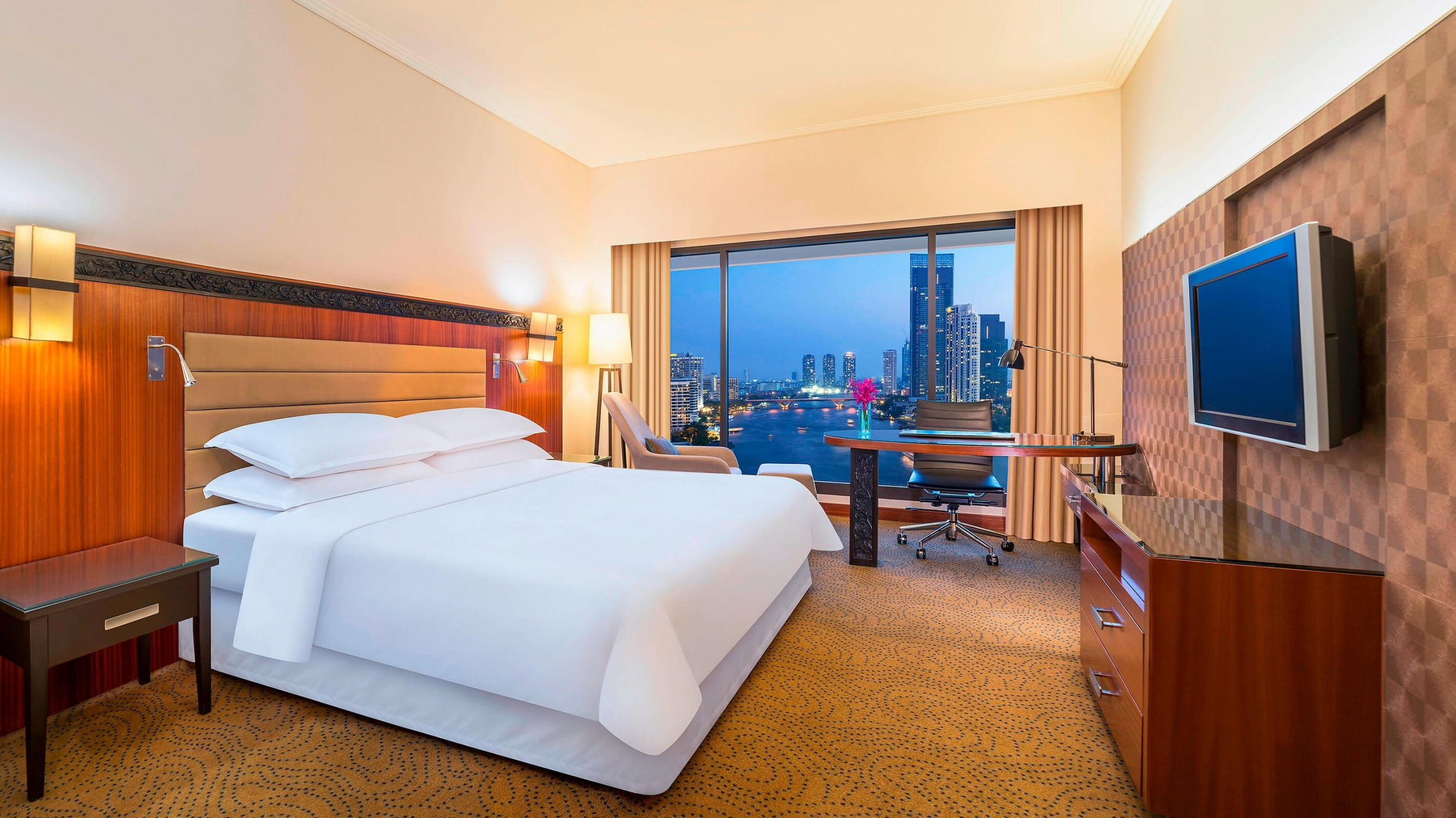 В отеле Royal Orchid Sheraton and Towers к услугам гостей 4 ресторана, 2 открытых бассейна и спа-центр. Гостям предоставляется бесплатный трансфер до станции наземного метро Saphan Taksin и торгового центра Icon Siam. В номерах с видом на реку Чаупхрая есть телевизор с плоским экраном, сейф и принадлежности для чая/кофе. В собственной ванной комнате установлена ванна и душ. Гости могут позаниматься в круглосуточном фитнес-центре, а также воспользоваться сауной, гидромассажной ванной и теннисным кортом. В отеле предоставляются услуги прачечной и консьержа. На берегу реки в течение всего дня работает ресторан World Cuisine. Здесь подают блюда по меню и в виде «шведского стола». В ресторане Giorgio's можно попробовать блюда итальянской кухни. С террасы ресторана Riverside Grill открывается панорамный вид на реку. В ресторане Thara Thong можно заказать блюда тайской кухни и полюбоваться традиционными тайскими танцами.