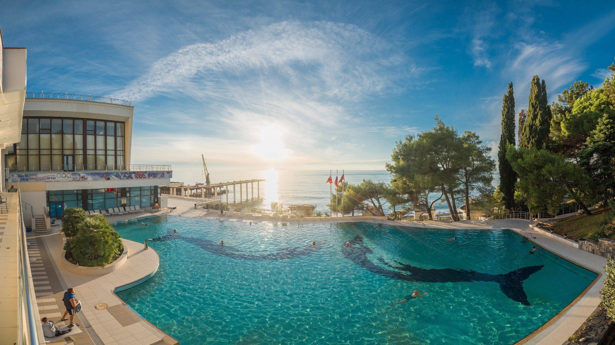 Спортивный центр санатория "Русь" имеет современное оснащение для активного отдыха и оздоровления: закрытые и открытые бассейны с морской и пресной водой, спортивный зал, тренажерный зал, спортивные площадки, финские сауны и турецкий хамам. Есть все необходимое для тренировок, как профессиональных спортсменов, так и делающих первые шаги новичков.