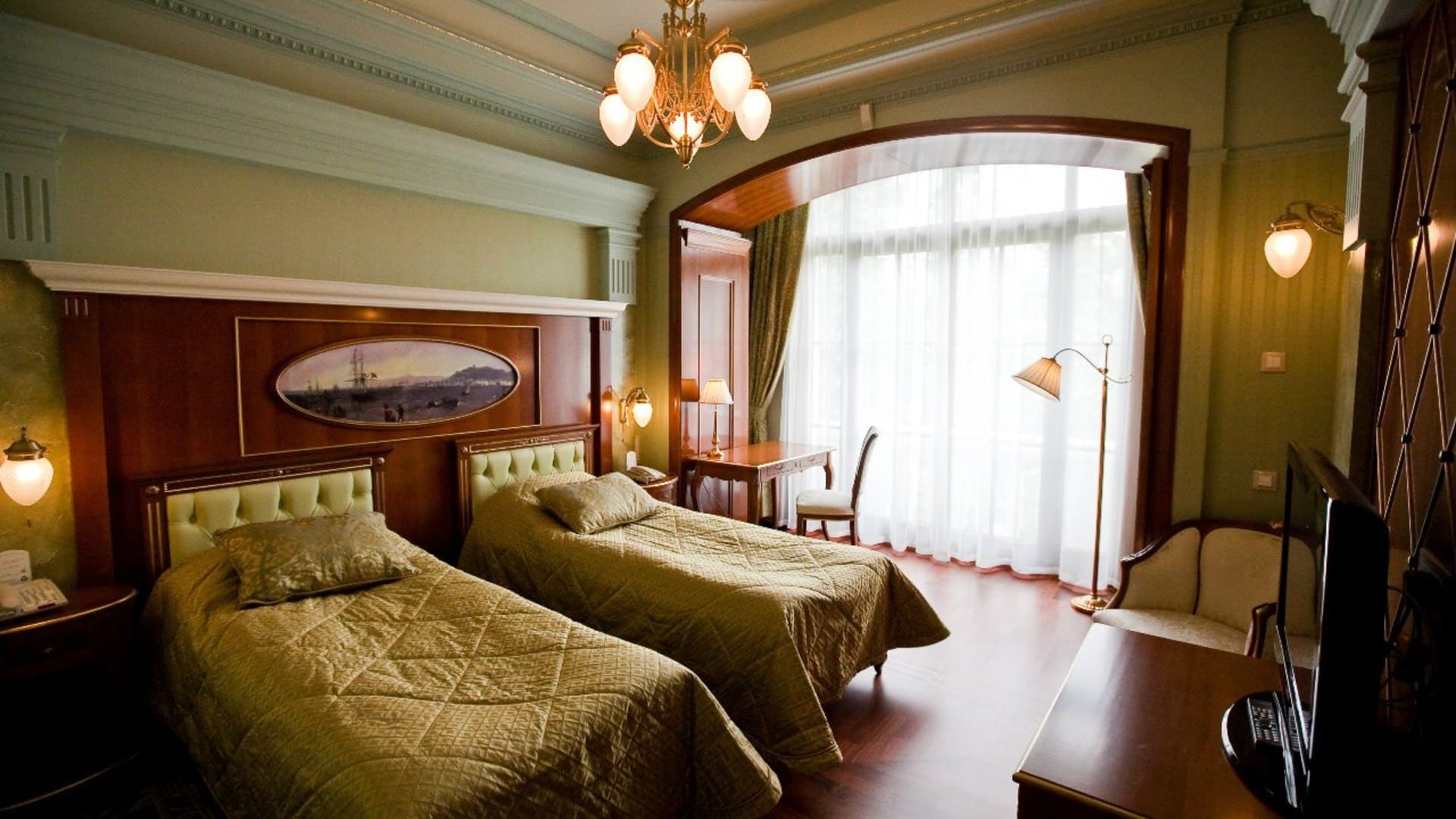 Объединённый санаторий "Русь" предлагает к Вашим услугам номера различных категории «4 и 5 звезд». К услугам гостей роскошные номера корпуса «Империал» , отдых в уединении в корпусе «Лесной», сочетание строгих форм и особый шарм стиля «Модерн» корпуса «Морской».