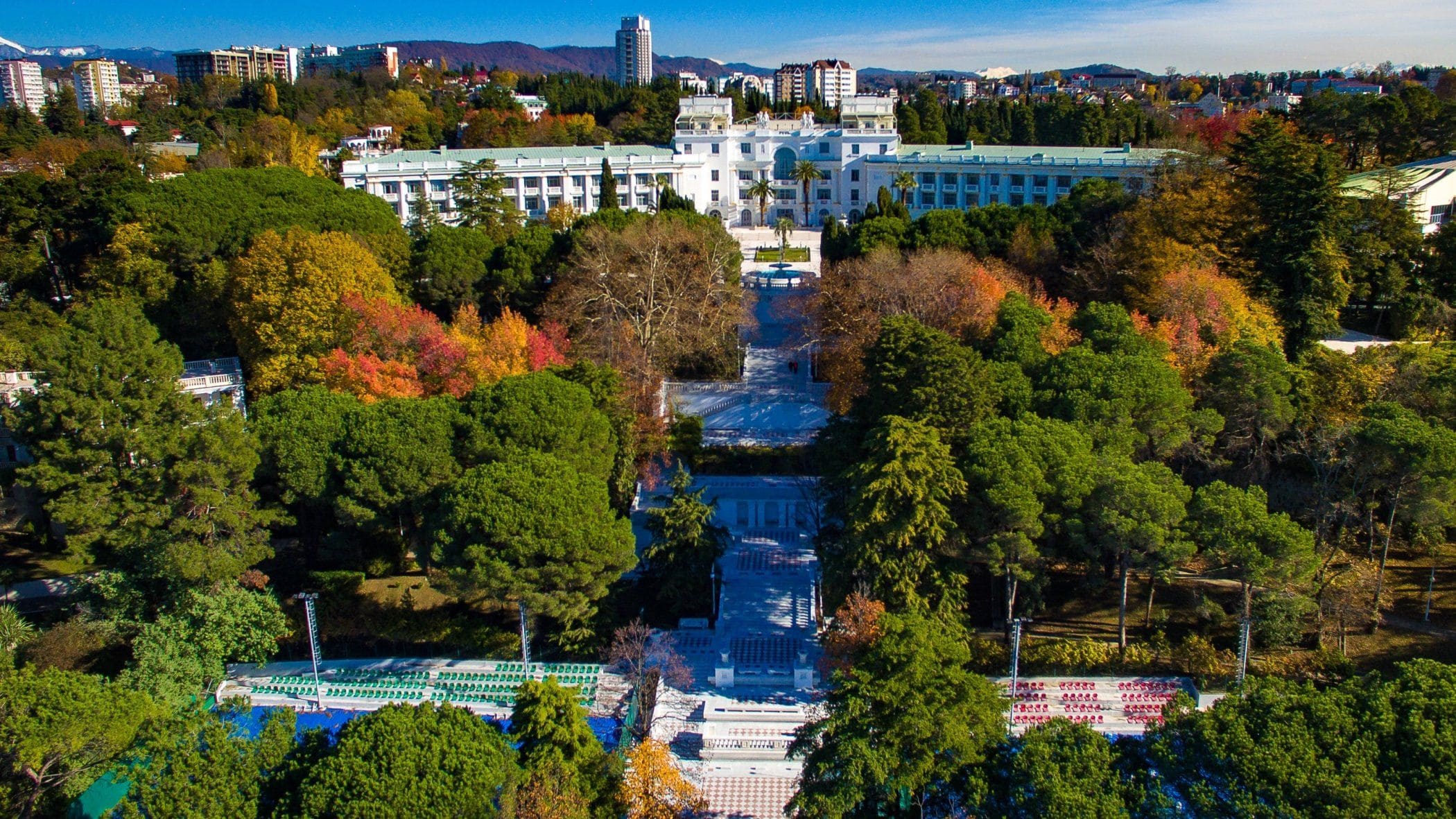 Роскошный курортно-гостиничный комплекс «Русь», расположен в самом сердце Причерноморской Ривьеры, в окружении великолепного субтропического парка площадью более 22 га. Парк не просто красив, а еще и целебен. Растения подобраны так, что в воздухе всегда в изобилии присутствуют фитонциды, обладающие лечебными свойствами. Кипарисы и магнолии, олеандры и деревья гингко – богатая флора (их более 450 видов, из которых 5 занесены в Красную книгу) позволили парку получить статус дендрологического.