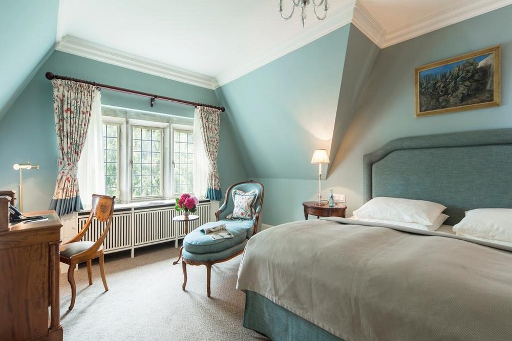 Deluxe room (30 кв. м). Спальня, ванная комната с душевой кабиной с функцией «тропический дождь». Вид на парк (в большинстве номеров). Возможно объединение с номерами категории Deluxe suite.