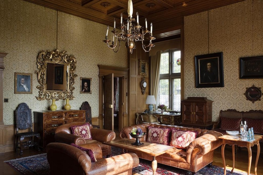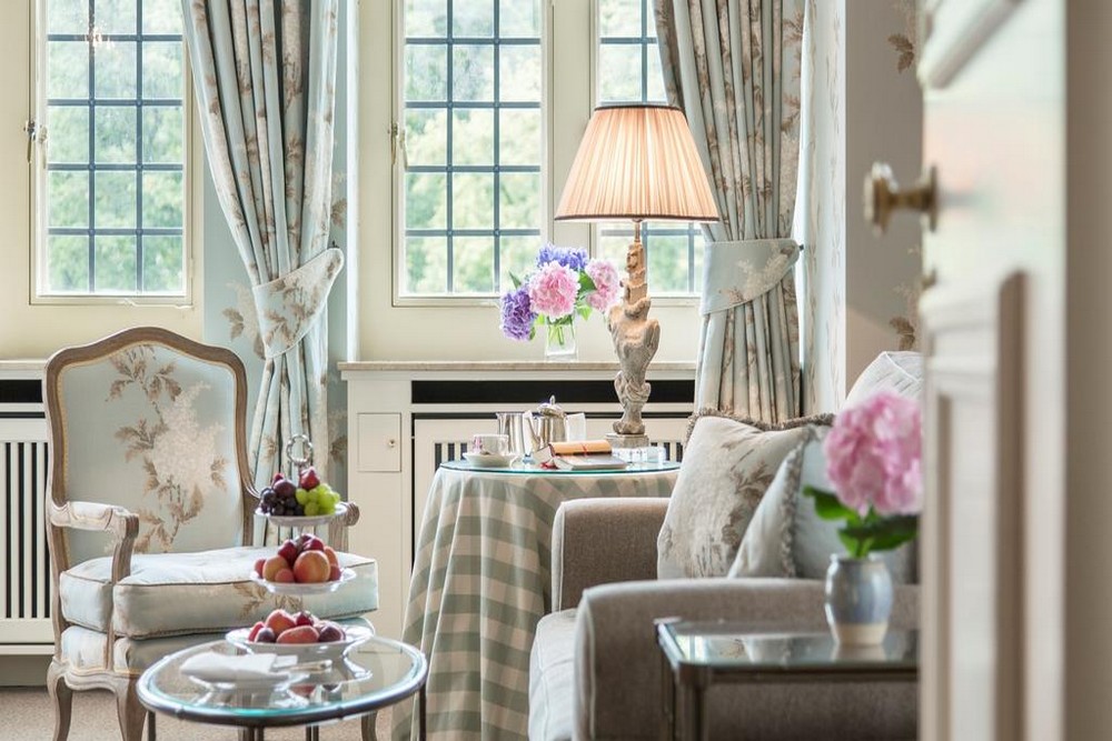 Royal suite (100 кв. м). Гостиная, спальня, ванная комната с ванной/душем. Вид на парк и гольф-поле.