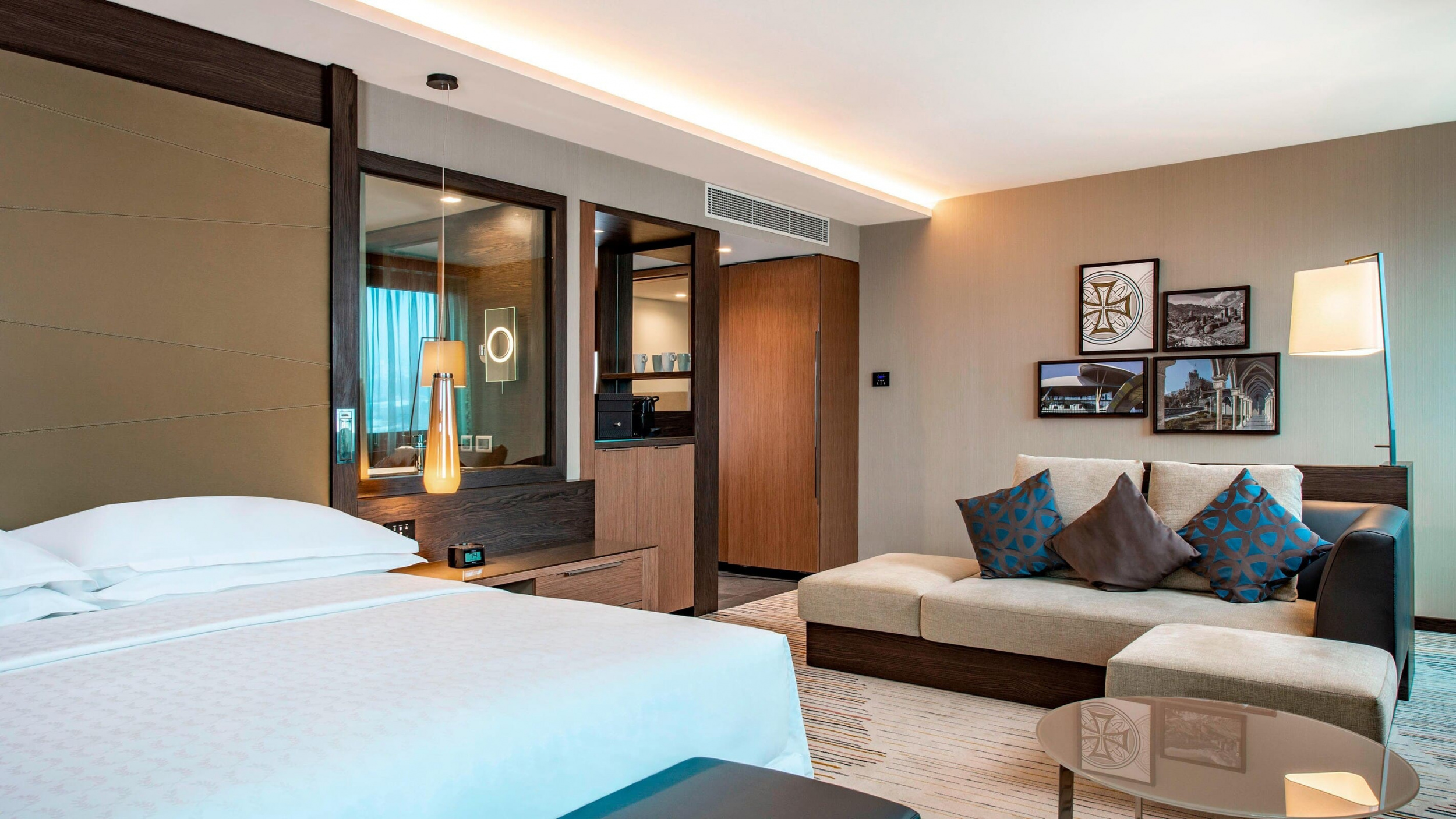 Отель Sheraton Grand Tbilisi Metechi Palace расположен в городе Тбилиси, в 3 км от площади Свободы. К услугам гостей сезонный открытый бассейн, частная парковка, бар и терраса. Среди удобств этого отеля - ресторан, круглосуточная стойка регистрации и обслуживание номеров, а также бесплатный Wi-Fi. Гости могут воспользоваться крытым бассейном или полюбоваться видом на город. Номера в отеле оснащены гостиным уголком и телевизором с плоским экраном. В номерах отеля Sheraton Grand Tbilisi Metechi есть кондиционер и отдельная ванная комната. Каждое утро в отеле подается завтрак "шведский стол".