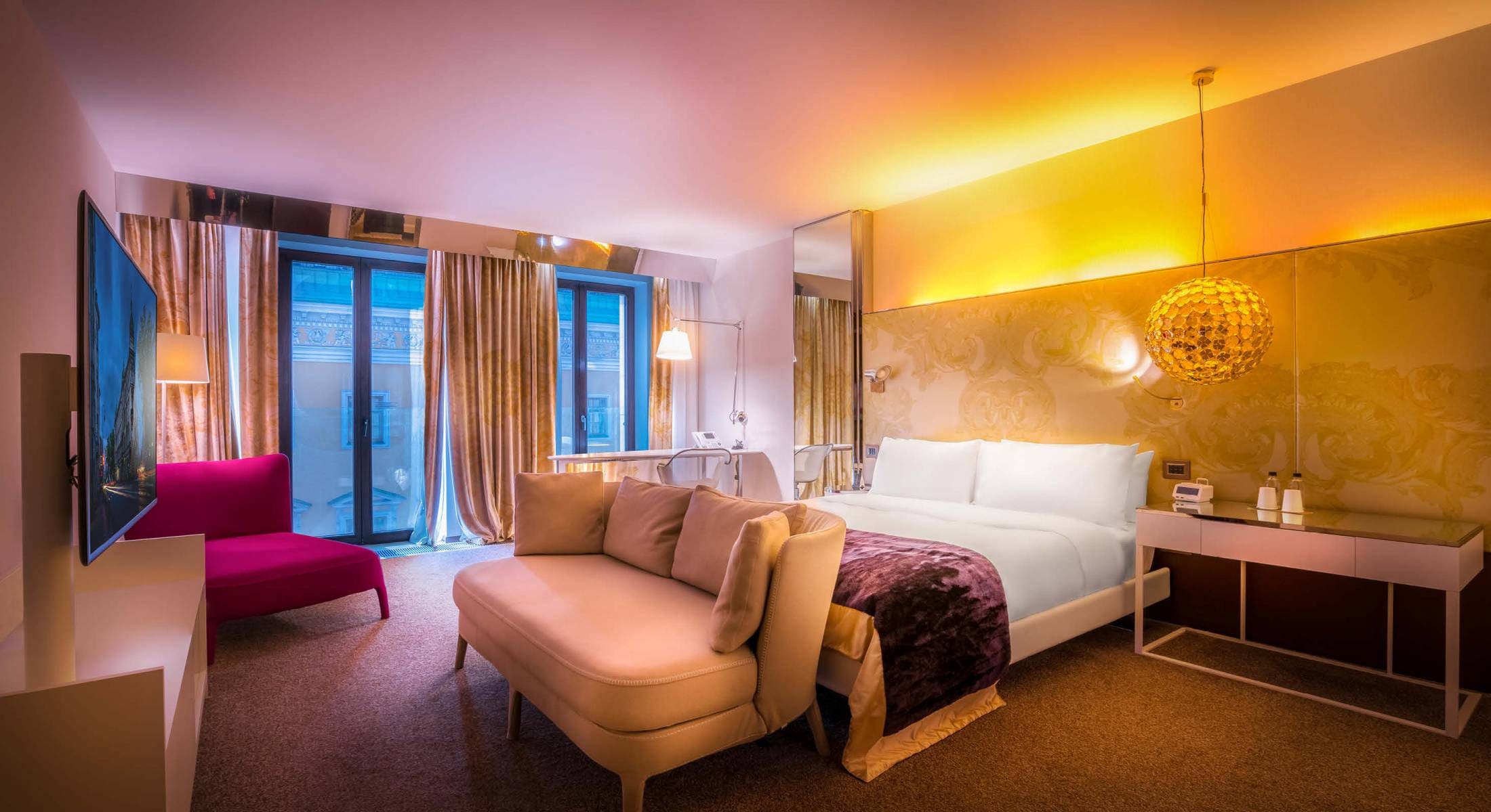 SO Studio king room (47 кв. м).Спальня с кроватью king-size, ванная комната. Вид на Вознесенский проспект. Возможно объединение с номером категории SO Comfy room.