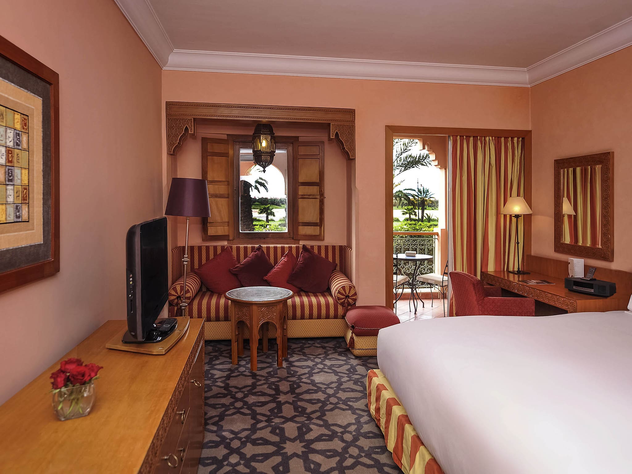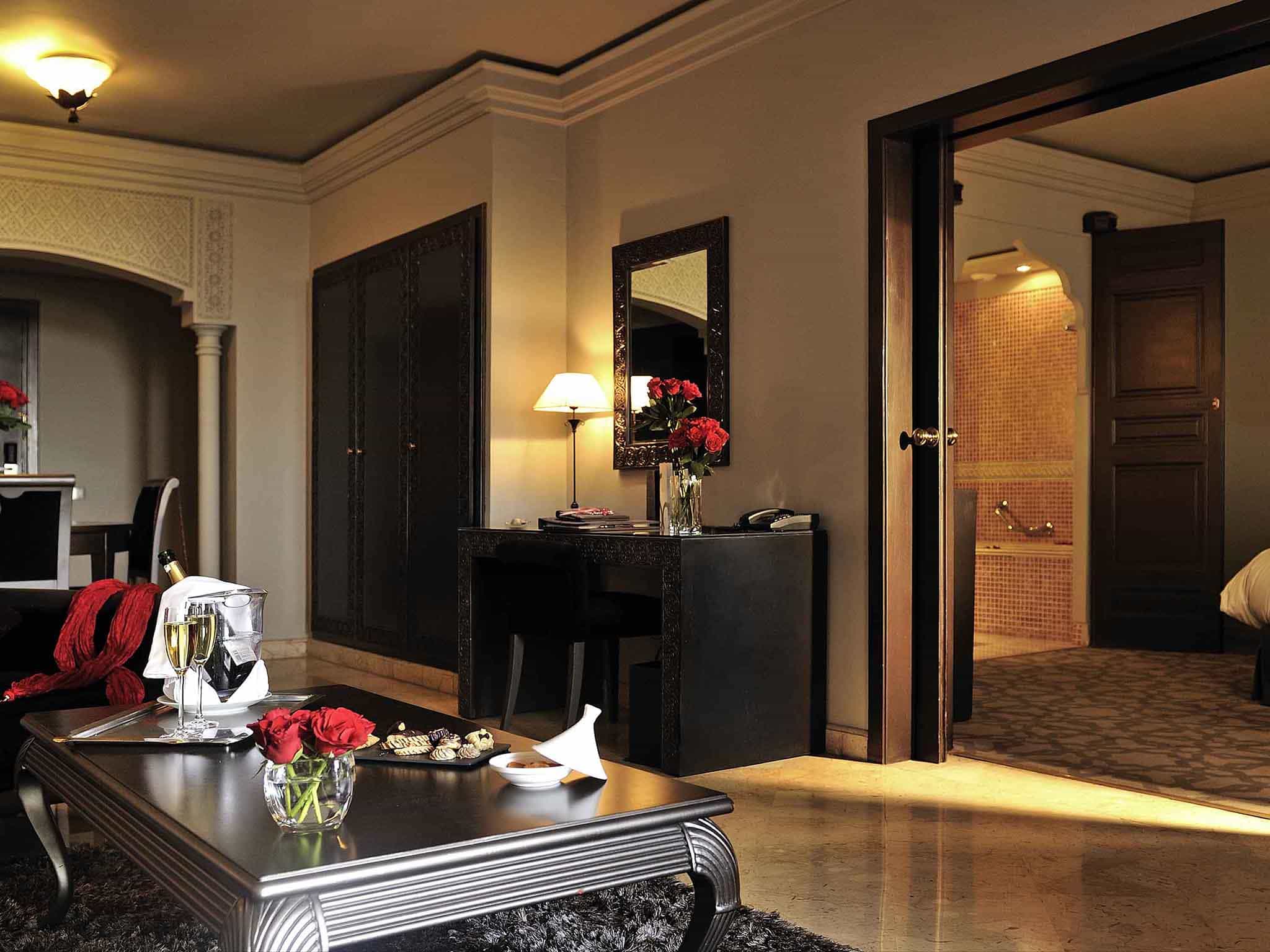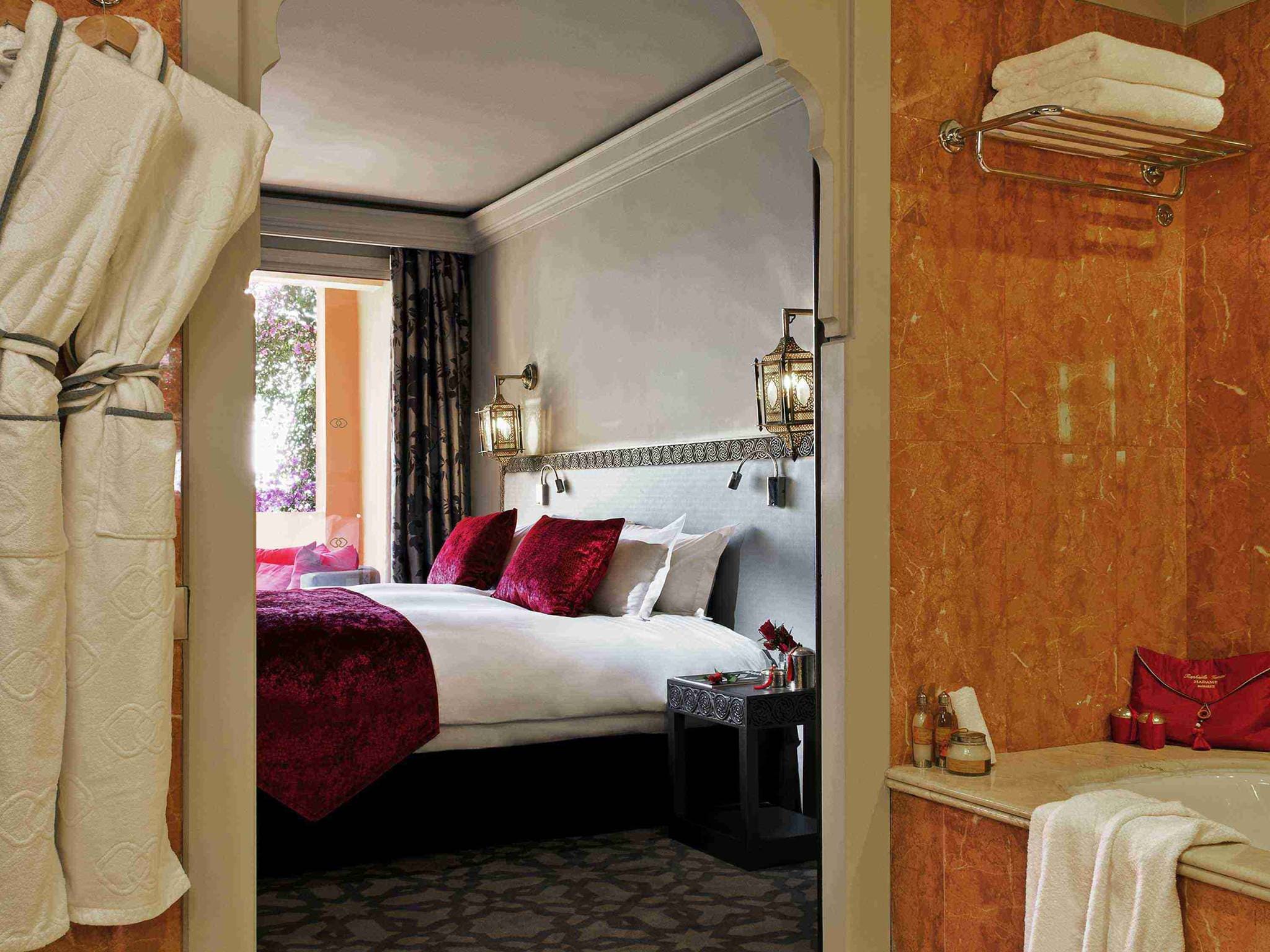 Luxury room overlooking gardens and pools (30 кв. м): аналогичны номерам категории Luxury room Koutoubia and ramparts, но имеют вид на сады и бассейн.