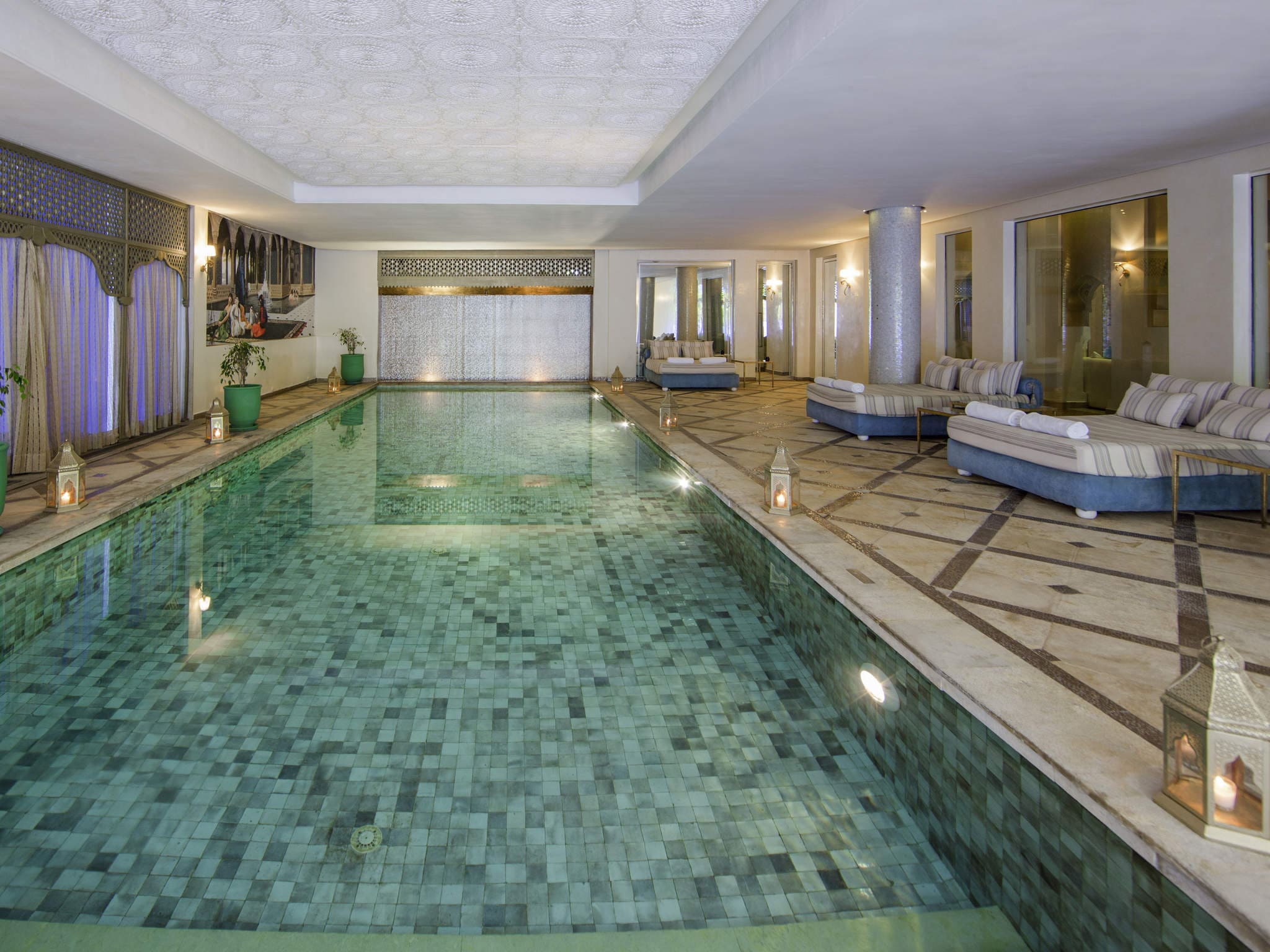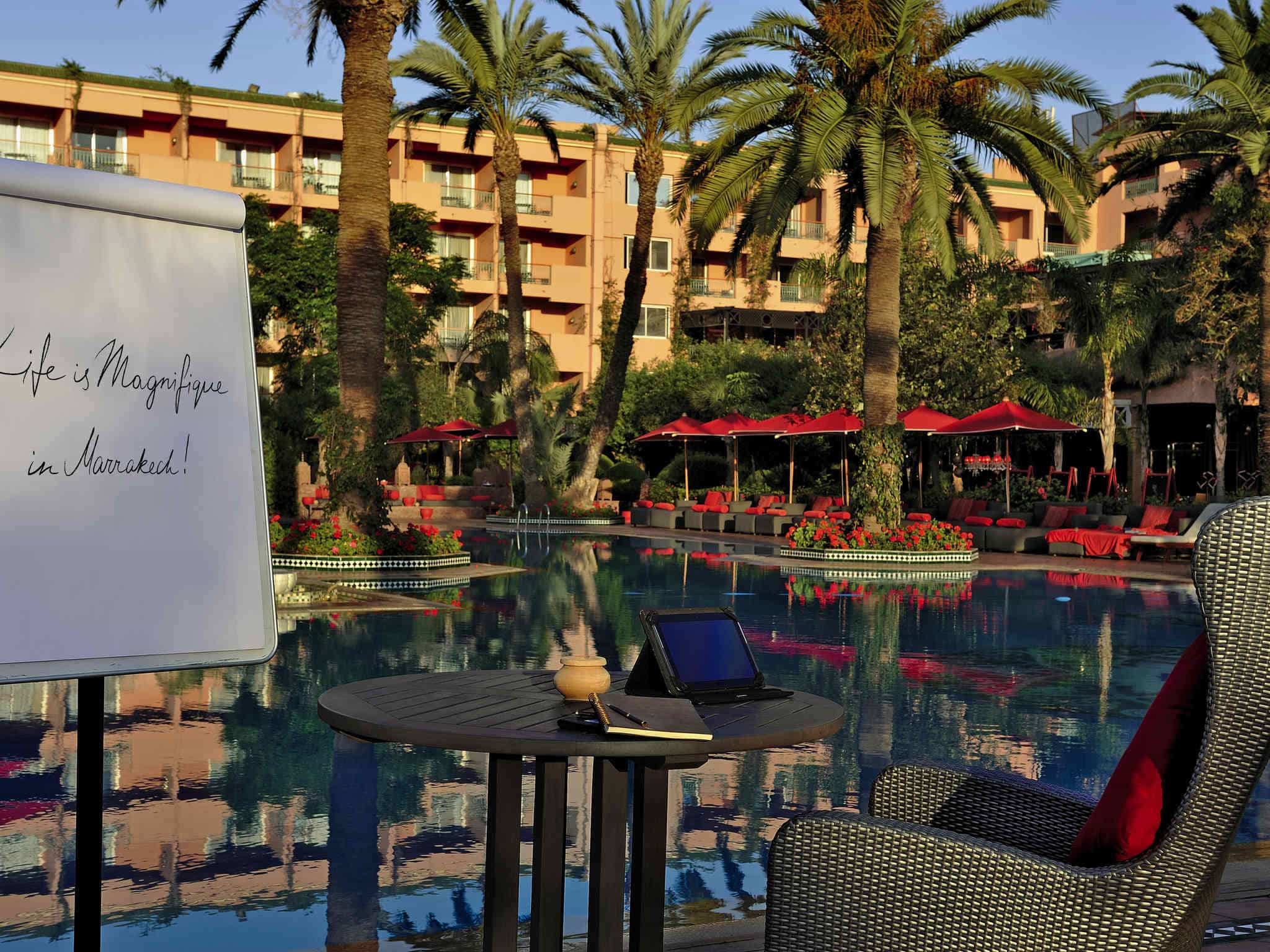 Окруженный садами с экзотическими растениями и цветами отель Sofitel Marrakech Le Palais напоминает мавританский дворец и располагает бассейном.