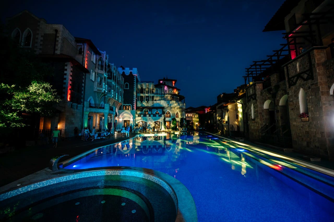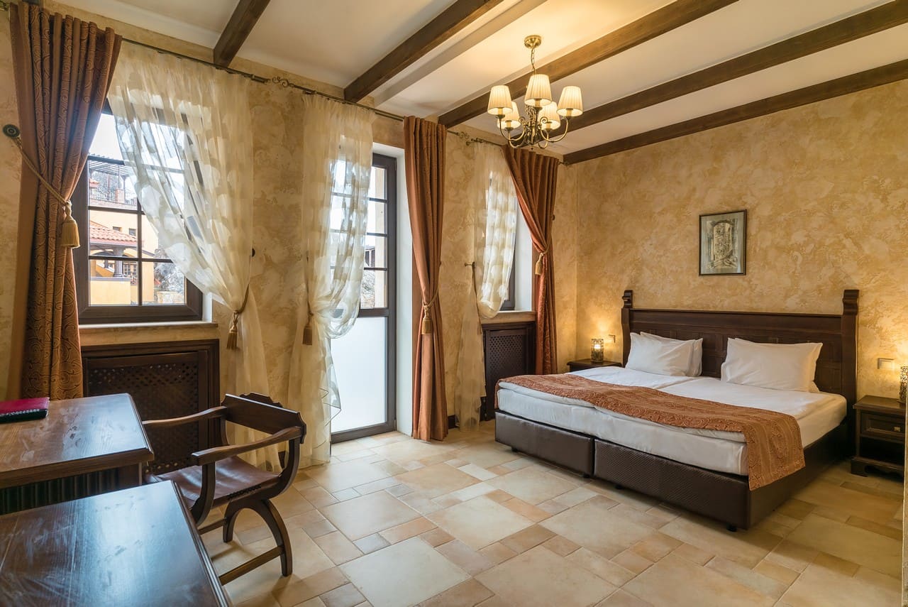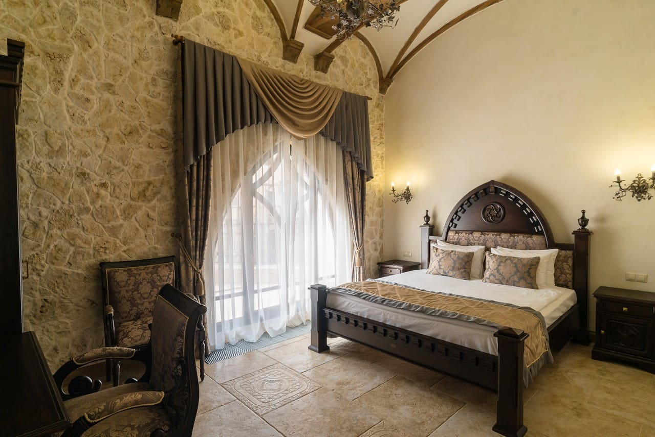 Комфорт Номера категории «Комфорт» расположены в разных корпусах отеля и оформлены в средиземноморском, средневековом и восточном стилях. Почти все номера категории «Комфорт» имеют французские балконы. Из окон номеров открывается вид на бассейн или территорию отеля.