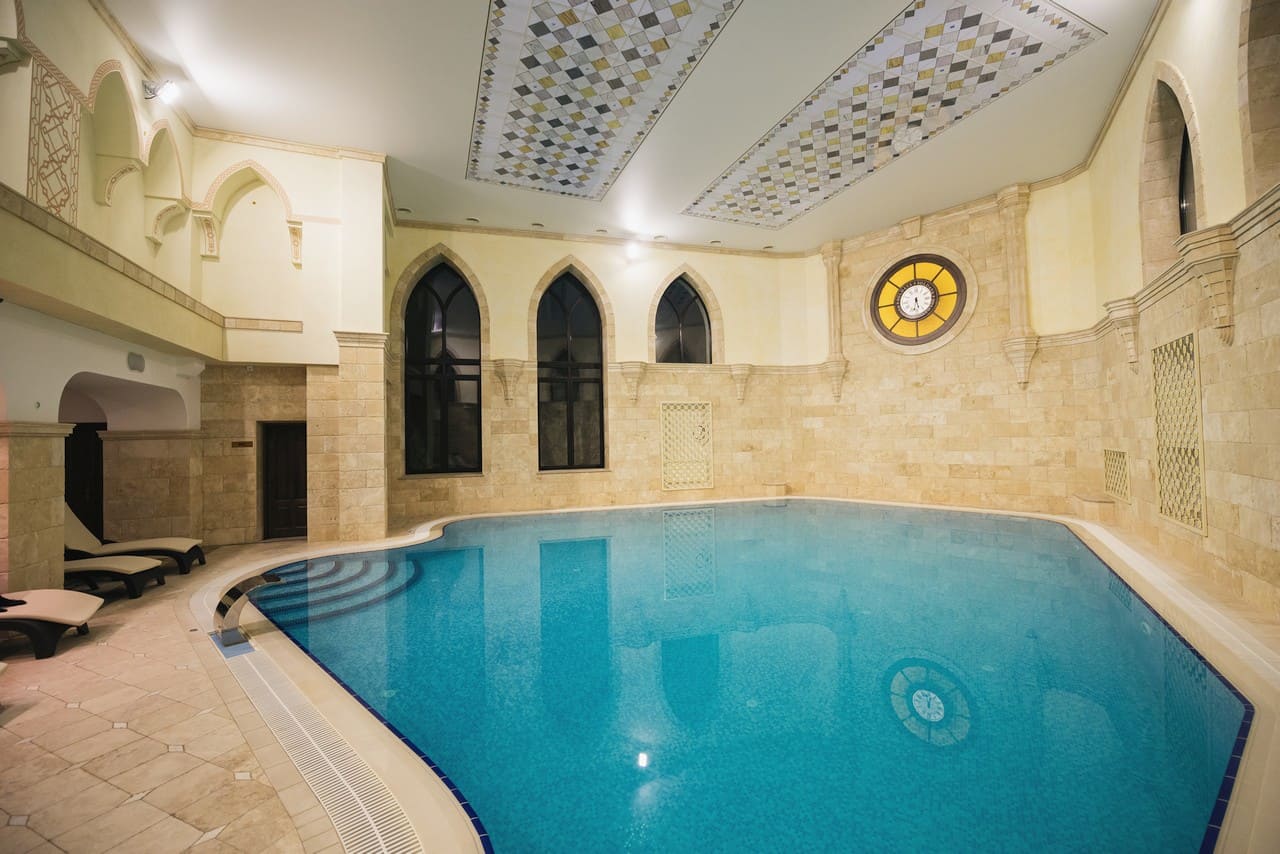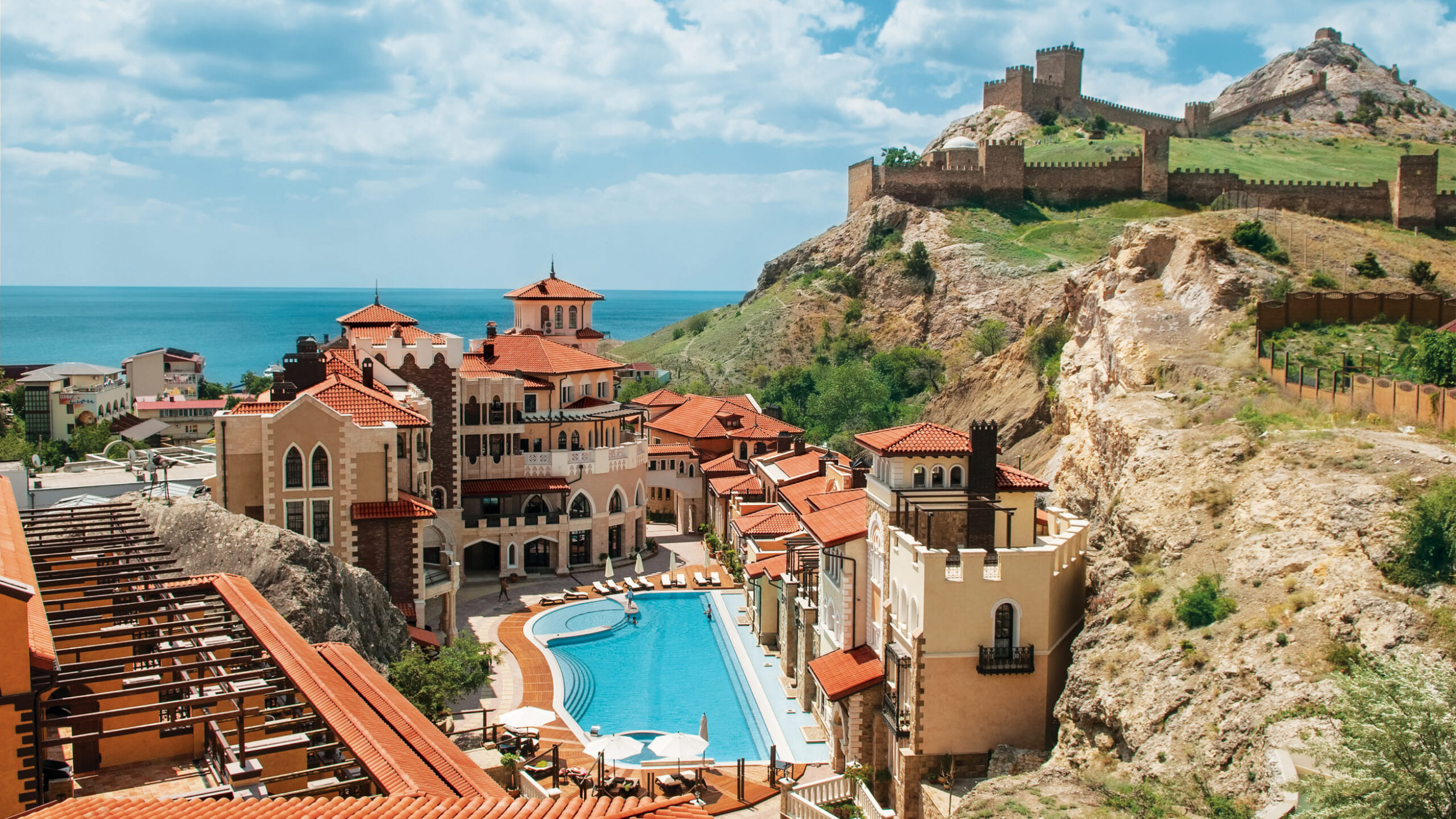 Полулюкс Комфорт В отеле Soldaya Grand Hotel & Resort имеется 15 однокомнатных номеров категории «Полулюкс Комфорт». Это просторные комфортабельные номера с общей площадью 32 кв.м. Особенностью номеров данной категории является роскошная обстановка и эксклюзивный дизайн каждого из них. Из окон номеров открывается вид на Генуэзскую крепость, бассейн или территорию отеля.