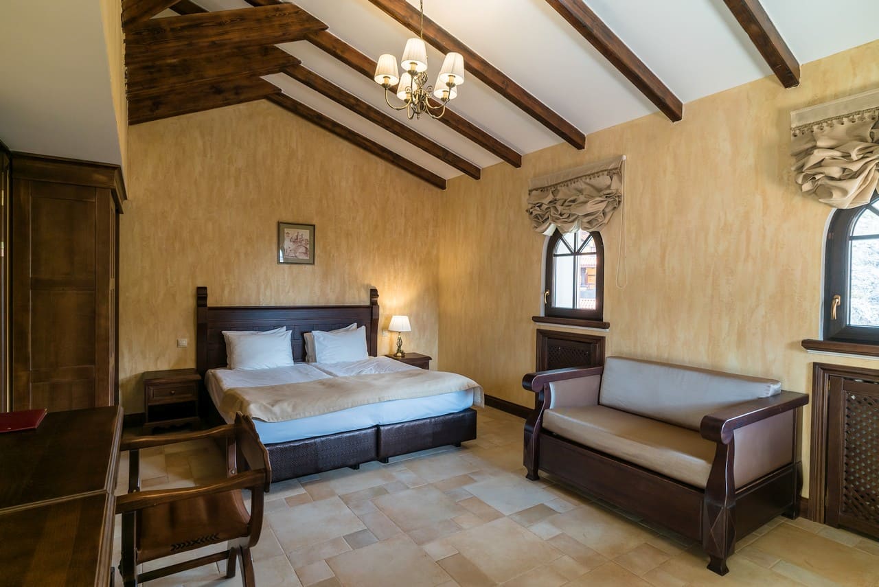 Королевский Люкс В отеле Soldaya Grand Hotel & Resort имеется 2 двухкомнатных номера категории «Королевский Люкс». Это просторные номера с изысканным дизайном интерьеров и роскошной обстановкой. Общая площадь каждого номера – около 70-и квадратных метров. Оба номера оснащены каминами.