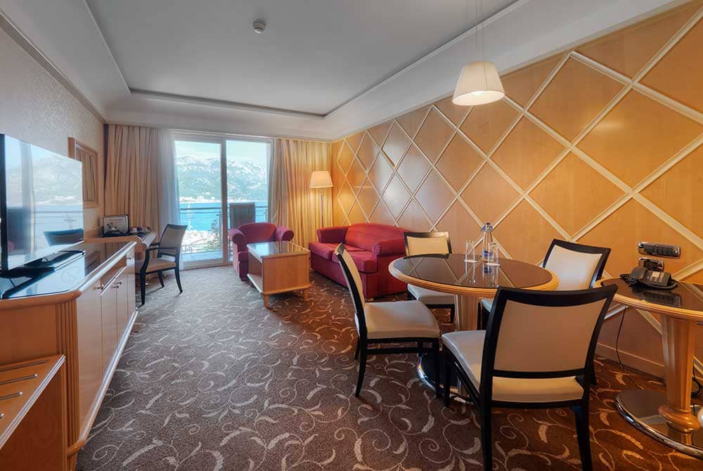 341 номер, 4 ресторана, 5 баров, собственный песчаный пляж, 2 открытых подогреваемых бассейна, 3 закрытых подогреваемых бассейна, спа-центр. В ресторане подают по меню великолепные блюда черногорской и интернациональной кухни из свежих продуктов. Представлен широкий выбор местных и всемирно известных вин. Благоустроен частный песчаный пляж с шезлонгами и зонтиками. У бассейна в течение дня можно заказать напитки и закуски. На территории отеля работает большое современное казино Royale.