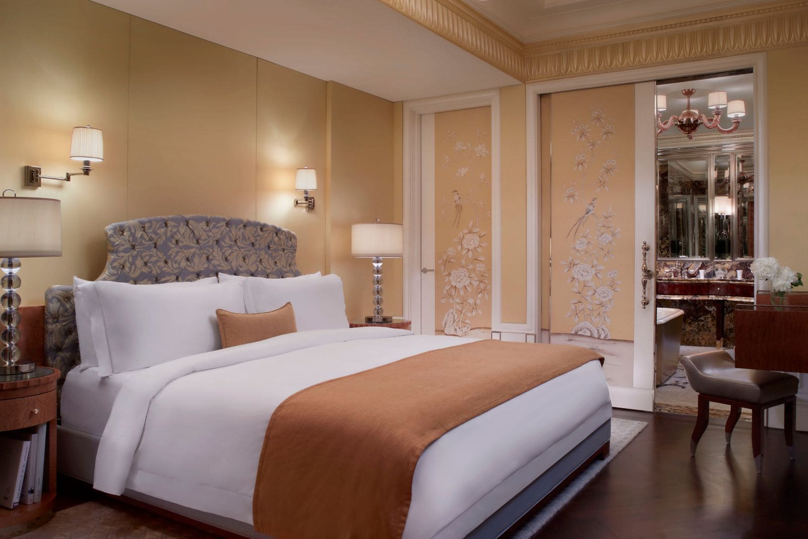 Carolina Astor suite (80-90 кв. м). Гостиная, спальня с кроватью king-size, гардеробная, ванная комната с ванной и душевой кабиной с функцией гидромассажа.