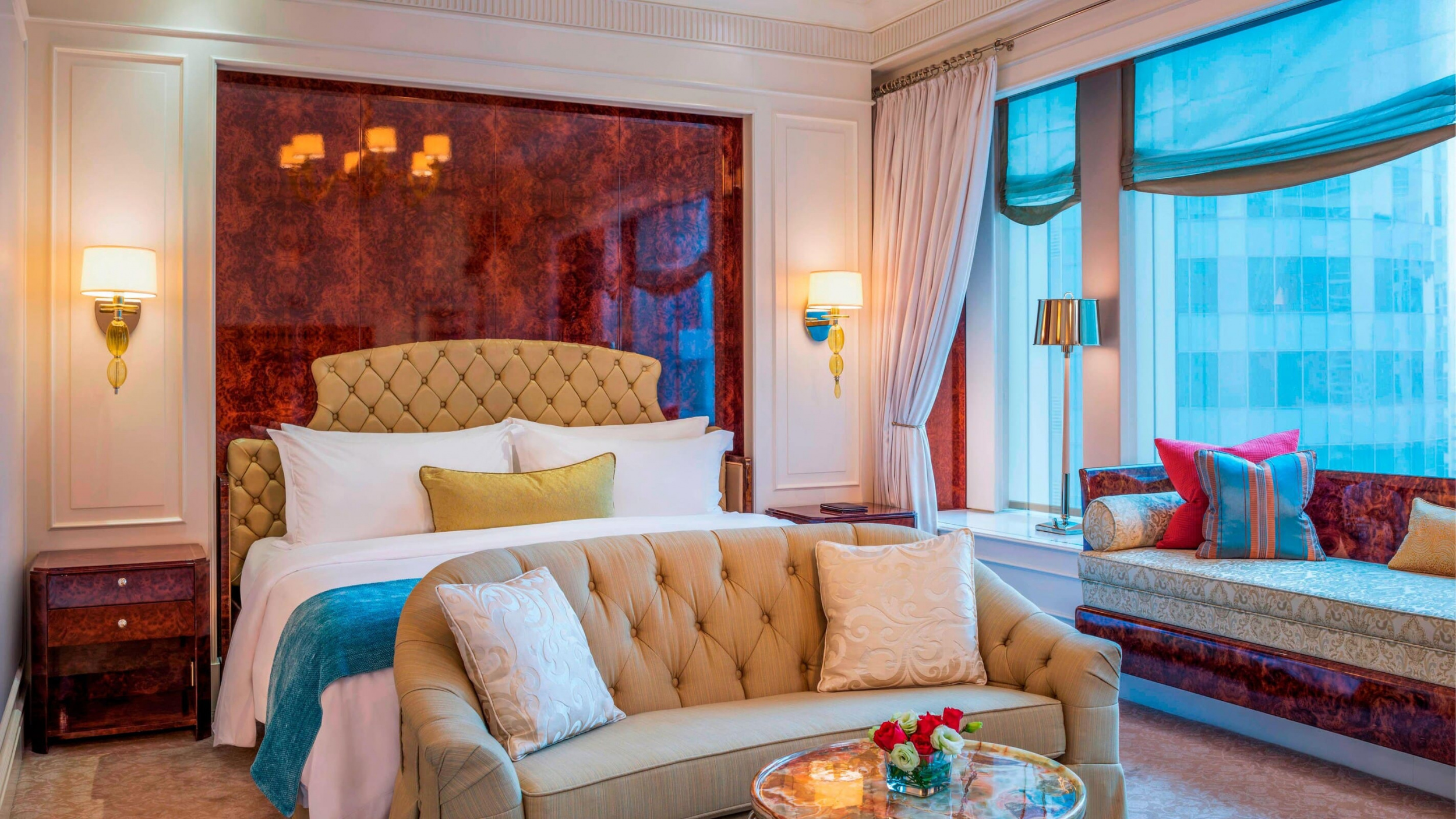 Manhattan suite. Прихожая, гостиная, спальня с кроватью king-size, ванная комната с ванной и душевой кабиной с функцией гидромассажа. Расположены в угловой части здания. Вид на город.