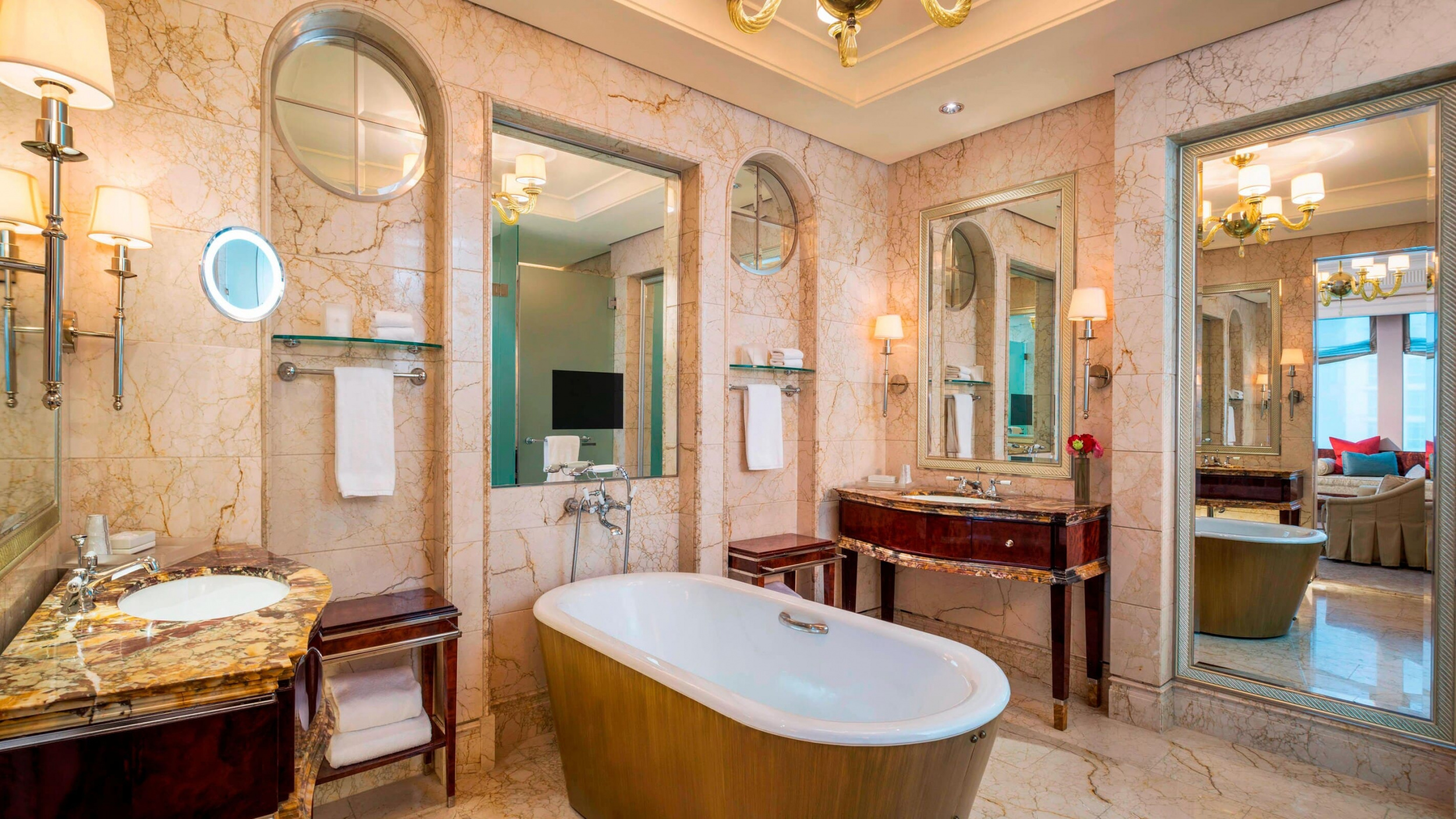 St Regis suite (70-80 кв. м). Гостиная, спальня с кроватью king-size, ванная комната с ванной и душевой кабиной с функцией гидромассажа.