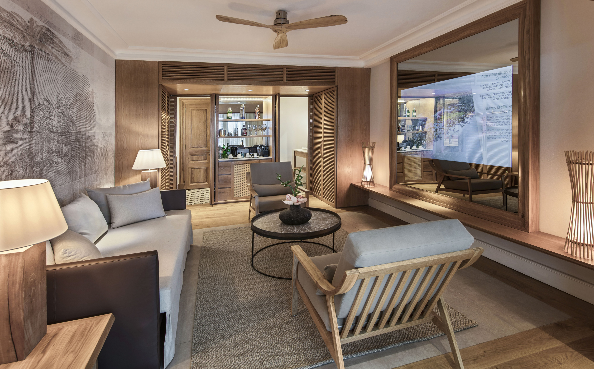 К услугам гостей оздоровительный спа-центр, тропический сад и большой открытый бассейн. Изысканно оформленные номера с кондиционером обставлены современной мебелью. В числе удобств просторных номеров телевизор с плоским экраном и спутниковыми каналами, гостиный уголок и балкон. Также предоставляются принадлежности для чая/кофе и бесплатные туалетно-косметические принадлежности. Из некоторых номеров открывается вид на море. В ресторане курортного отеля Sugar Beach подают оригинальные блюда маврикийской кухни, а также итальянские и интернациональные блюда. Кроме того, гости могут отдохнуть в баре и заказать вкусные коктейли. За дополнительную плату предоставляется трансфер от/до международного аэропорта имени сэра Сивусагара Рамгулама, расположенного в 1 часе езды.
