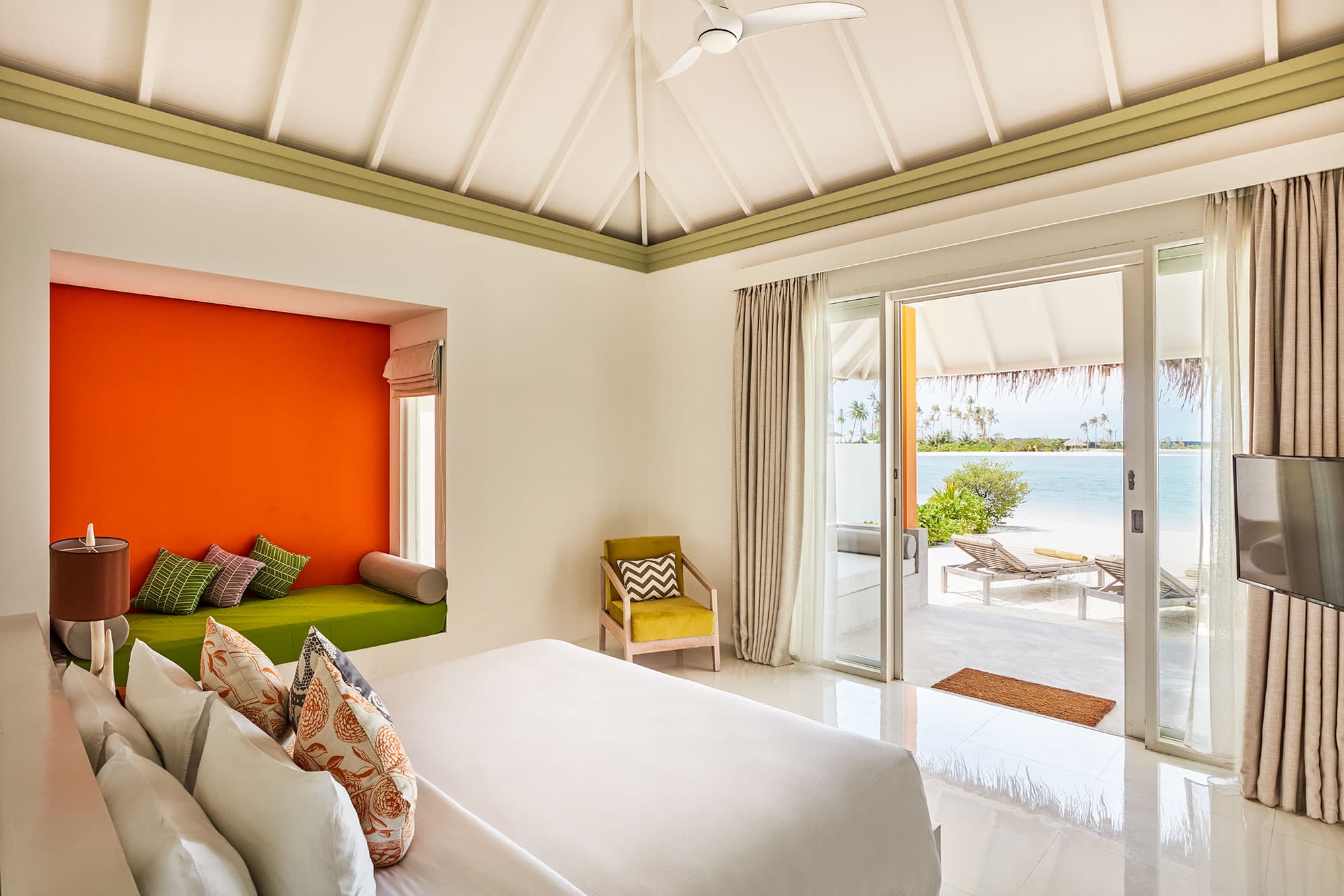 Курортный спа-отель Olhuveli Beach находится в 45 минутах езды на катере от международного аэропорта Мале.