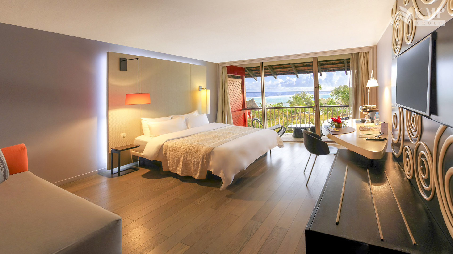 Deluxe ocean view (lagoon) room (36 кв. м). Терраса (7 кв. м), спальня с кроватью king-size или двумя отдельными кроватями, ванная комната с ванной и душевой кабиной. Расположены с 3 по 5 этаж. Вид на океан, пляж и сады.