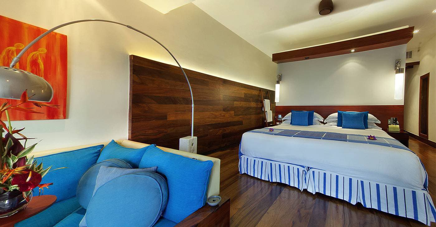 Beach room (70 кв. м). Спальня с кроватью king-size, ванная комната с джакузи и душем с функцией «тропический дождь». Расположены на первом этаже. Номера имеют открытую планировку. Вид на пляж, сад и океан.
