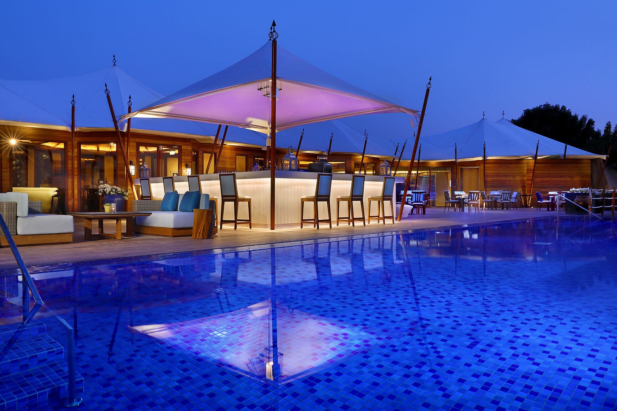 В архитектуре вилл, построенных в арабском архитектурном стиле, гармонично сочетаются естественные естественные тенденции и элементы декора в средиземноморском стиле. В оформлении интерьеров использованы голубые и белые элементы декора. В числе удобств — телевизор с плоским экраном и бесплатный Wi-Fi. Из собственного патио с пейзажным бассейном прямо на пляж открывается уникальный вид на бассейн.