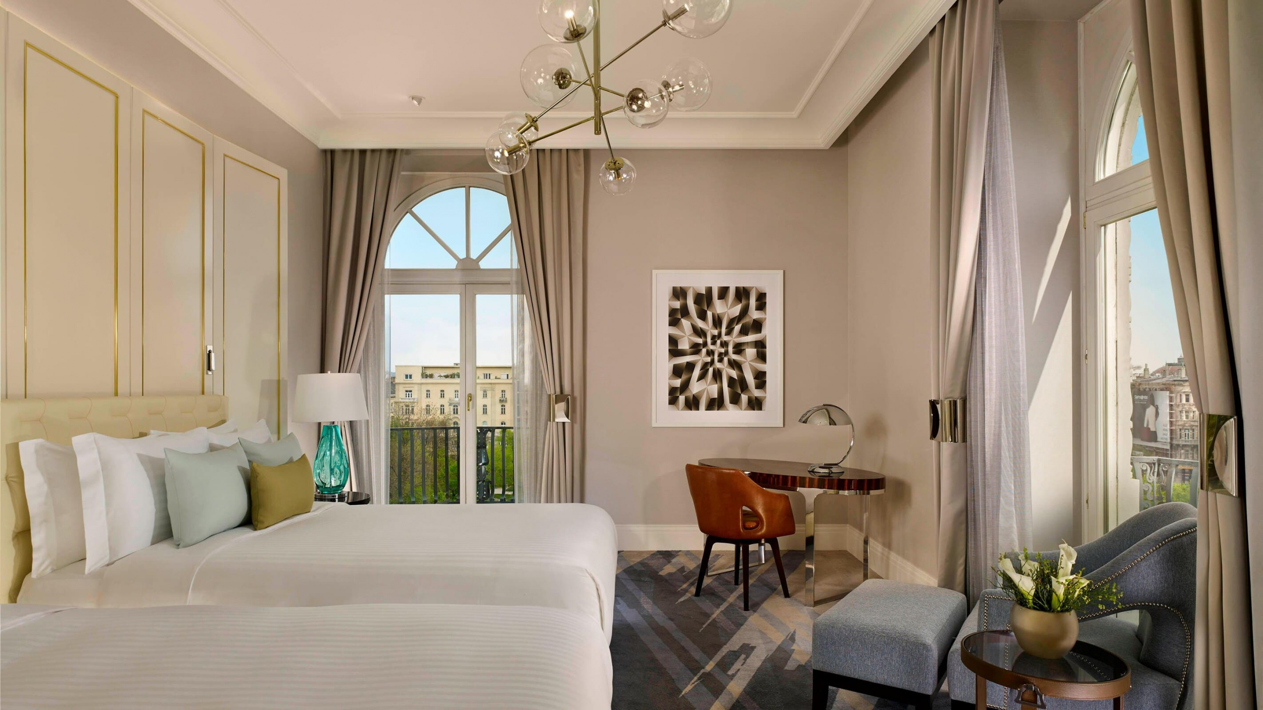 Deluxe room (36 кв. м): балкон (в некоторых номерах), спальня с кроватью king-size или двумя отдельными кроватями, ванная комната с ванной и душем. Вид на парк или соседнюю улицу.