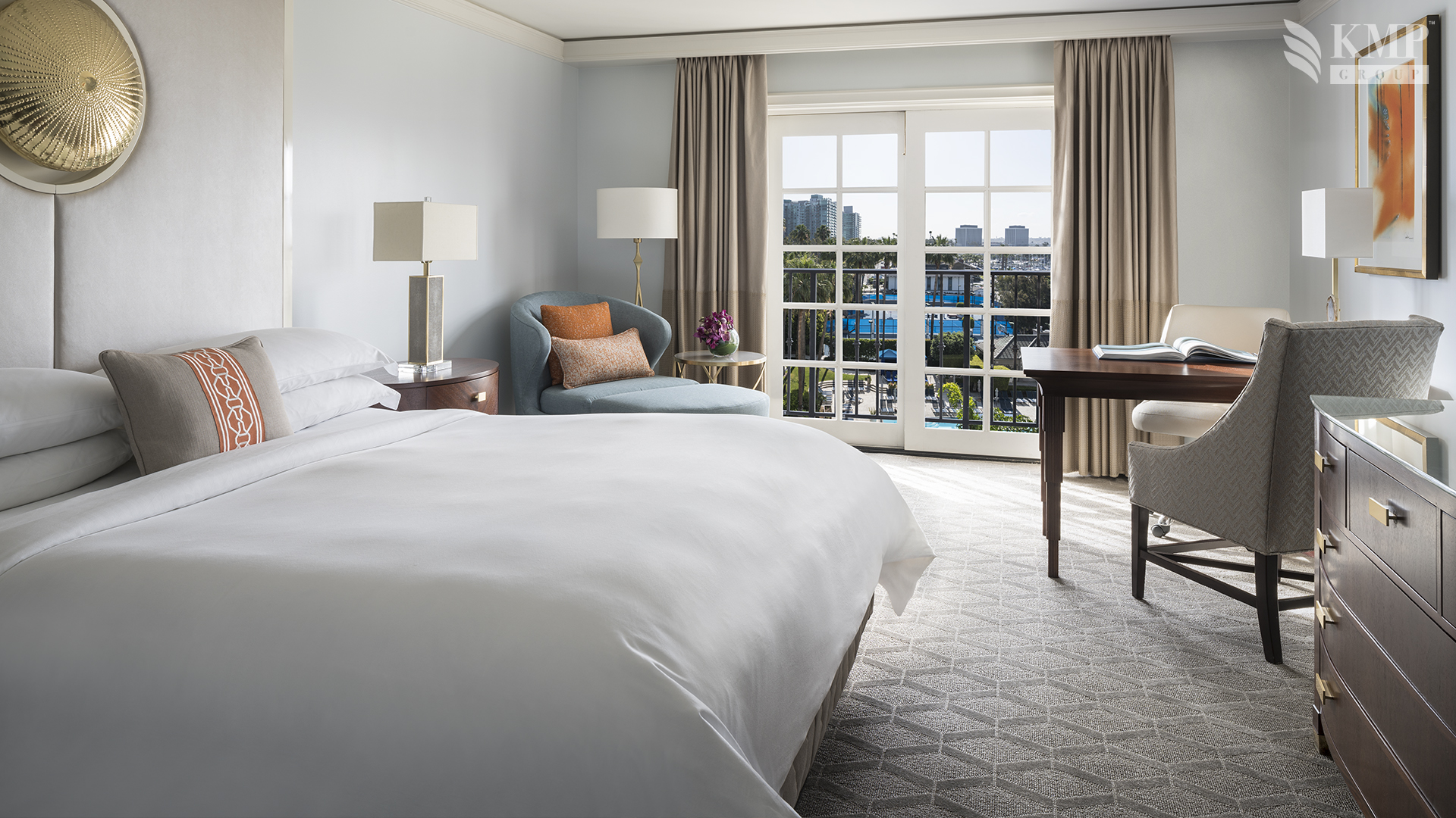 Harbor King (Junior Suite) (37 кв.м): кровать king-size, просторная гостиная зона, большая ванная комната с гардеробной зоной, небольшой балкон с видом на гавань и Тихий океан.
