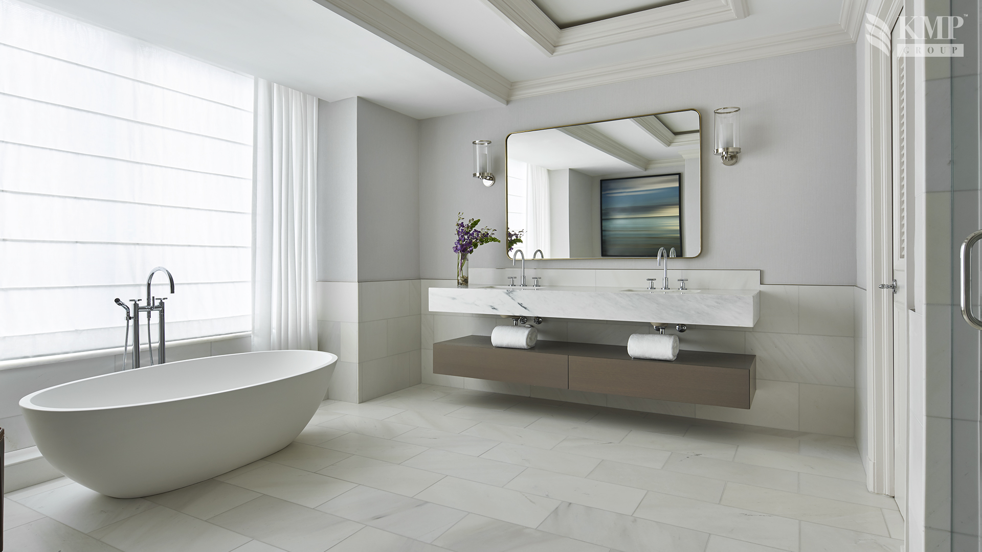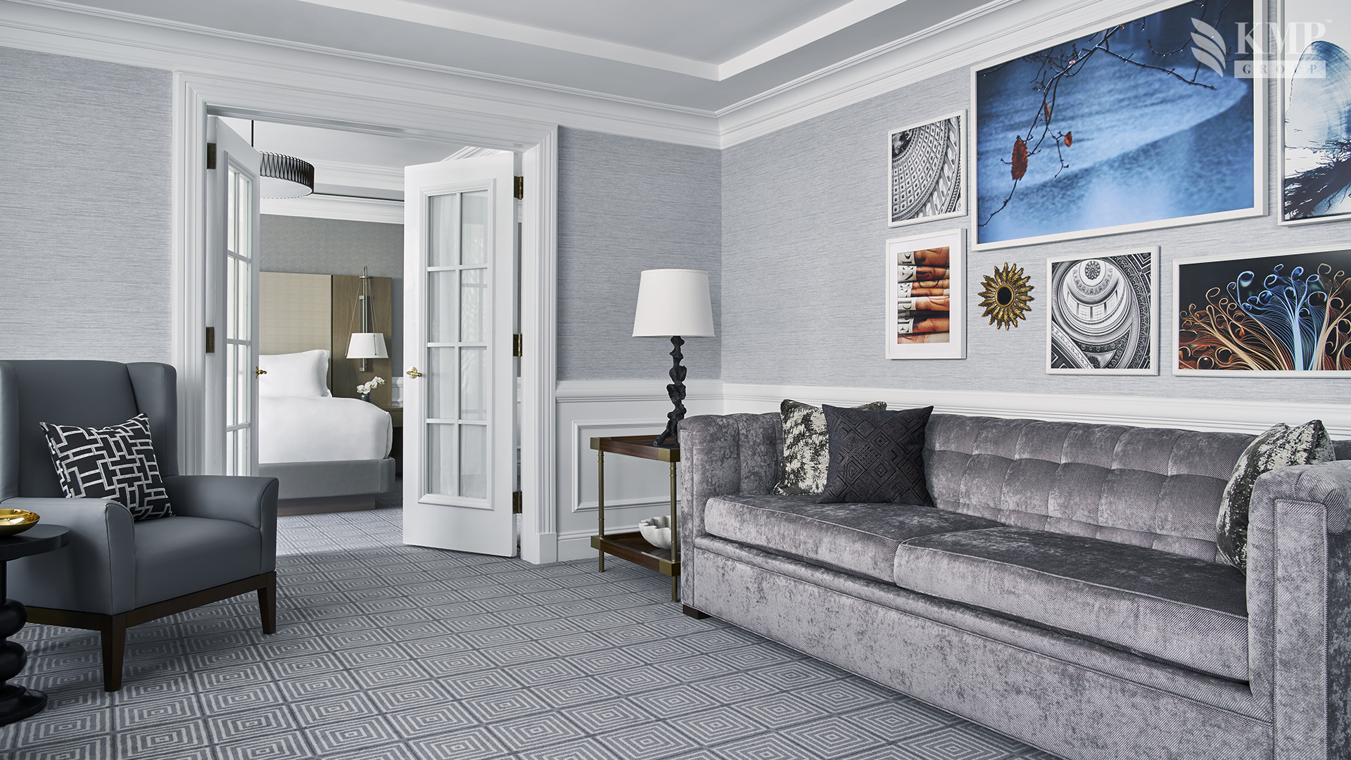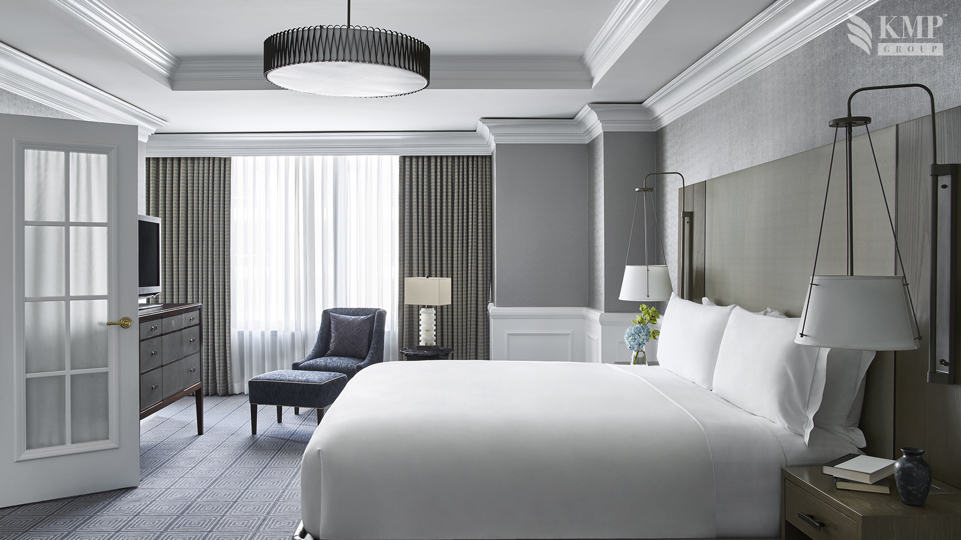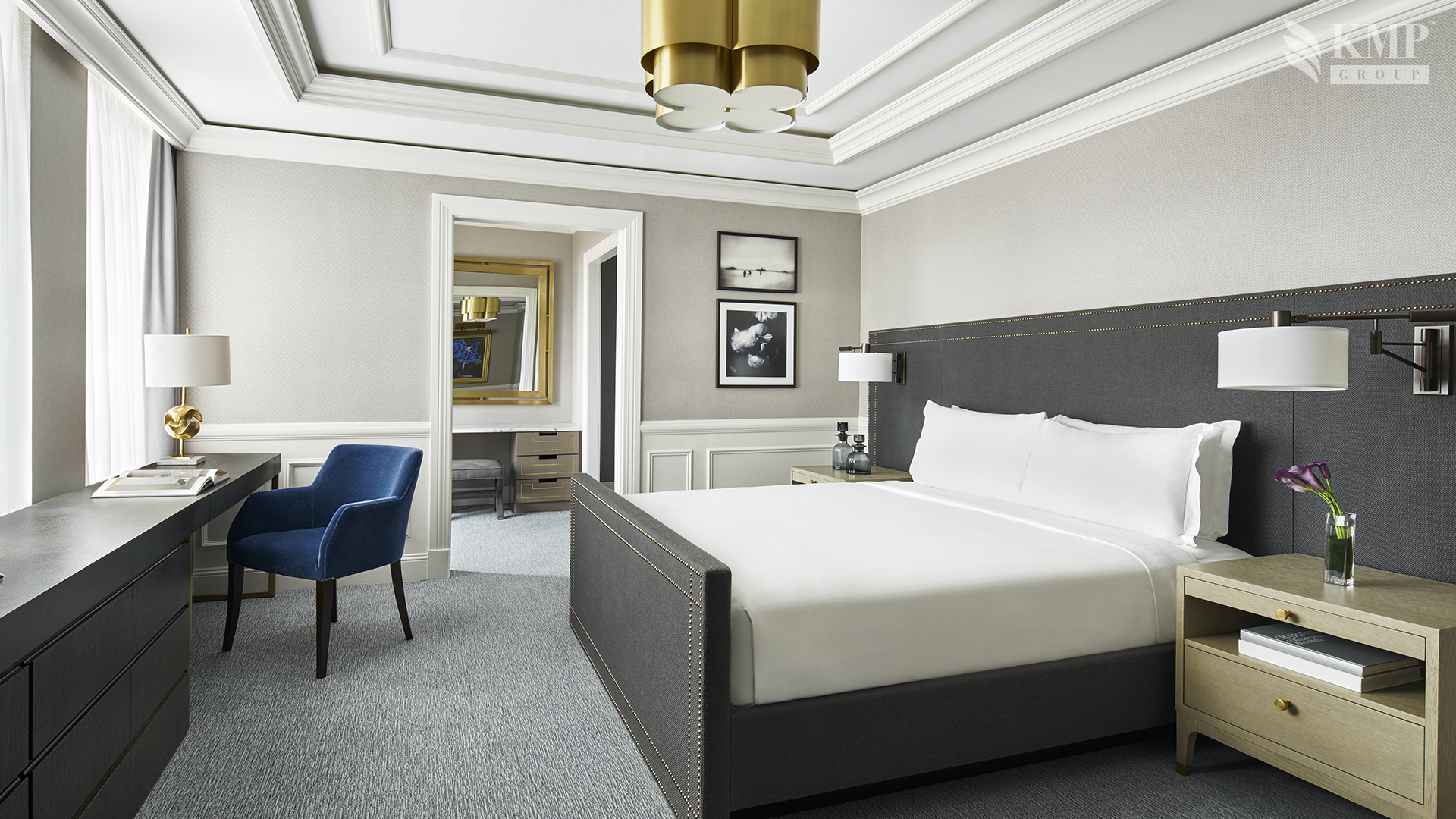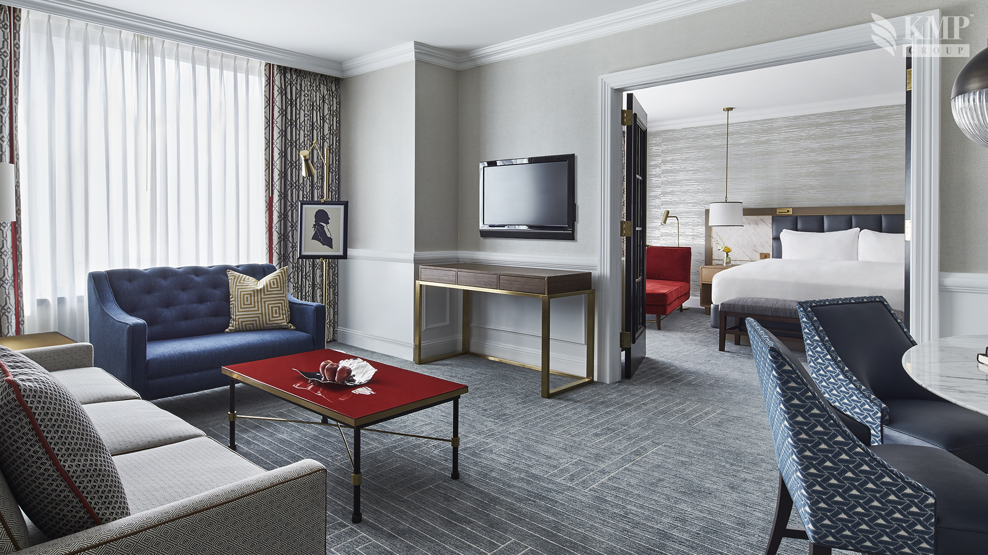 Club Level one bedroom suite (83 кв. м). Гостиная, спальня с кроватью king-size, ванная комната с ванной и душем.