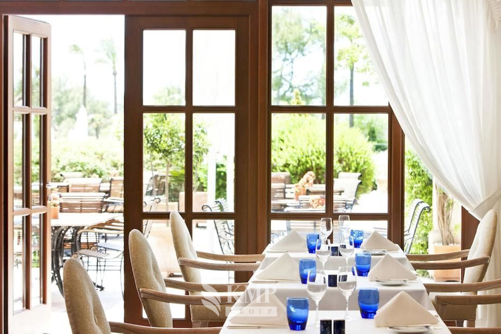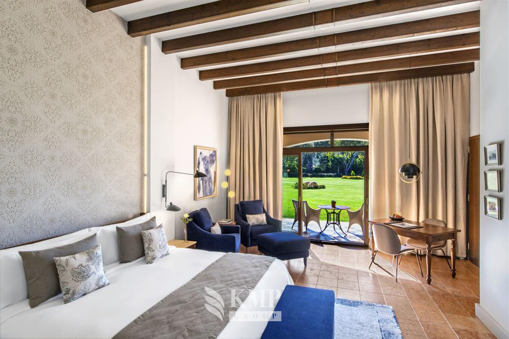 133 номера, 2 ресторана, 3 бара, открытый бассейн, закрытый подогреваемый бассейн с морской водой, 2 детских бассейна (подогреваемые с весны по конец октября), спа-центр, салон красоты, тренажерный зал, пилатес, детский клуб, бизнес-центр, 5 конференц-залов, WI-FI доступ в Интернет, услуги консьержа, услуги няни, парковка. Неподалеку: 3 гольф-поля.
