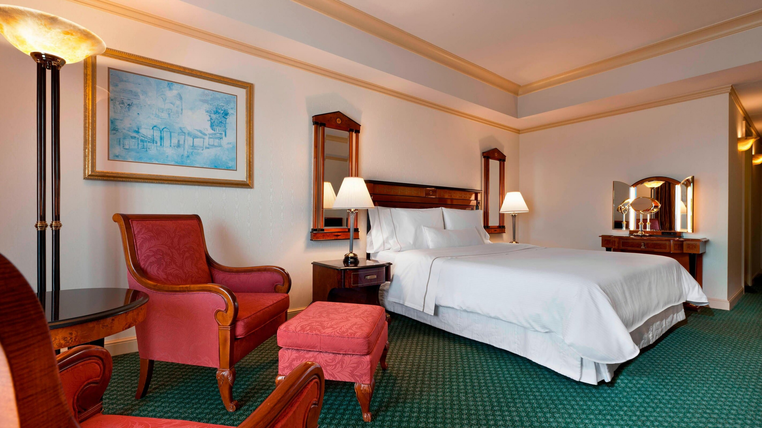 Deluxe Rooms (42 м2.). Номера с кроватью king size или двумя кроватями twin, состоят из спальни и ванной комнаты.