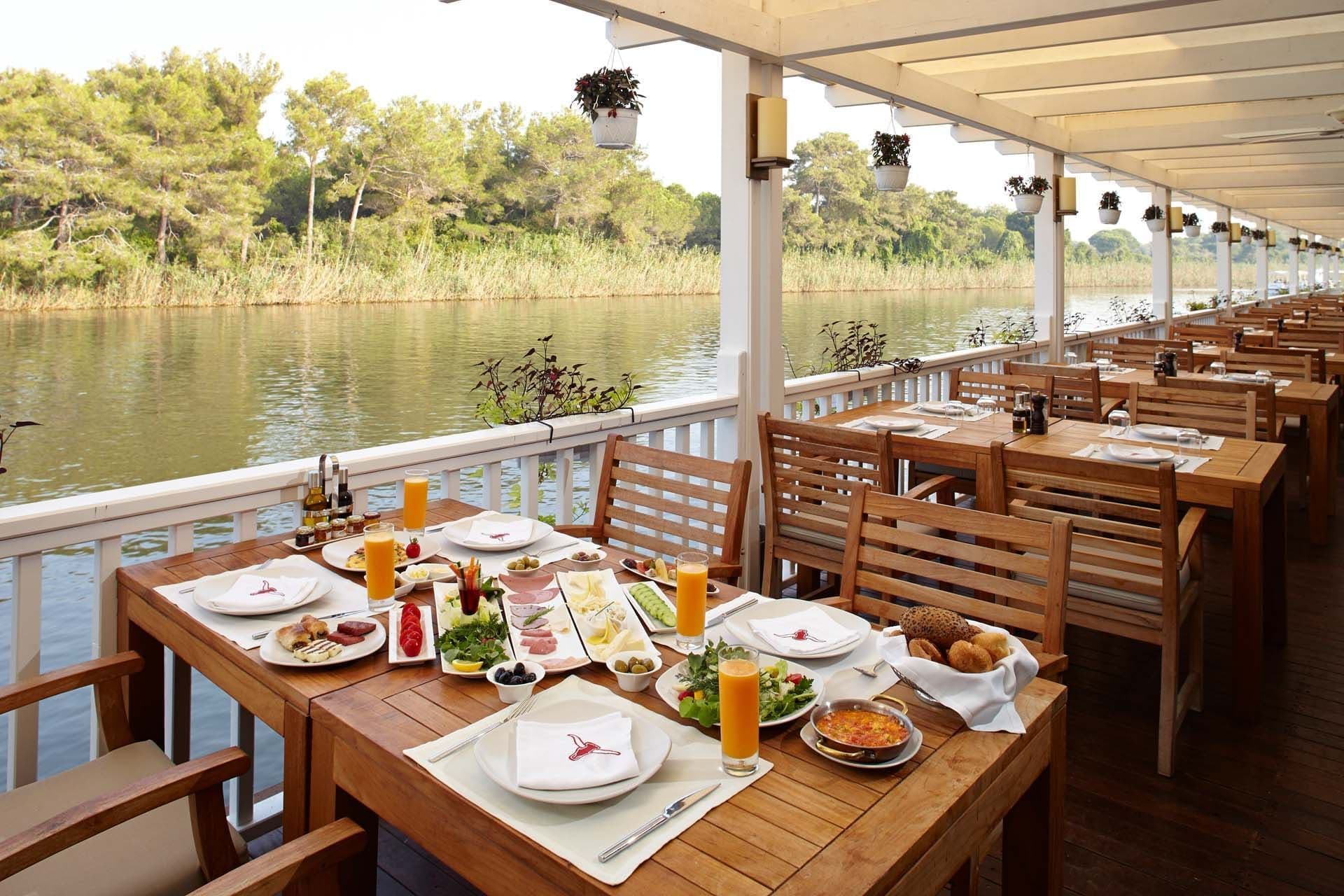 В курортном отеле работают ресторан, в котором сервируется «шведский стол», в том числе детский, и 4 ресторана с обслуживанием по меню, где подают блюда турецкой и итальянской кухни, а также блюда из морепродуктов.