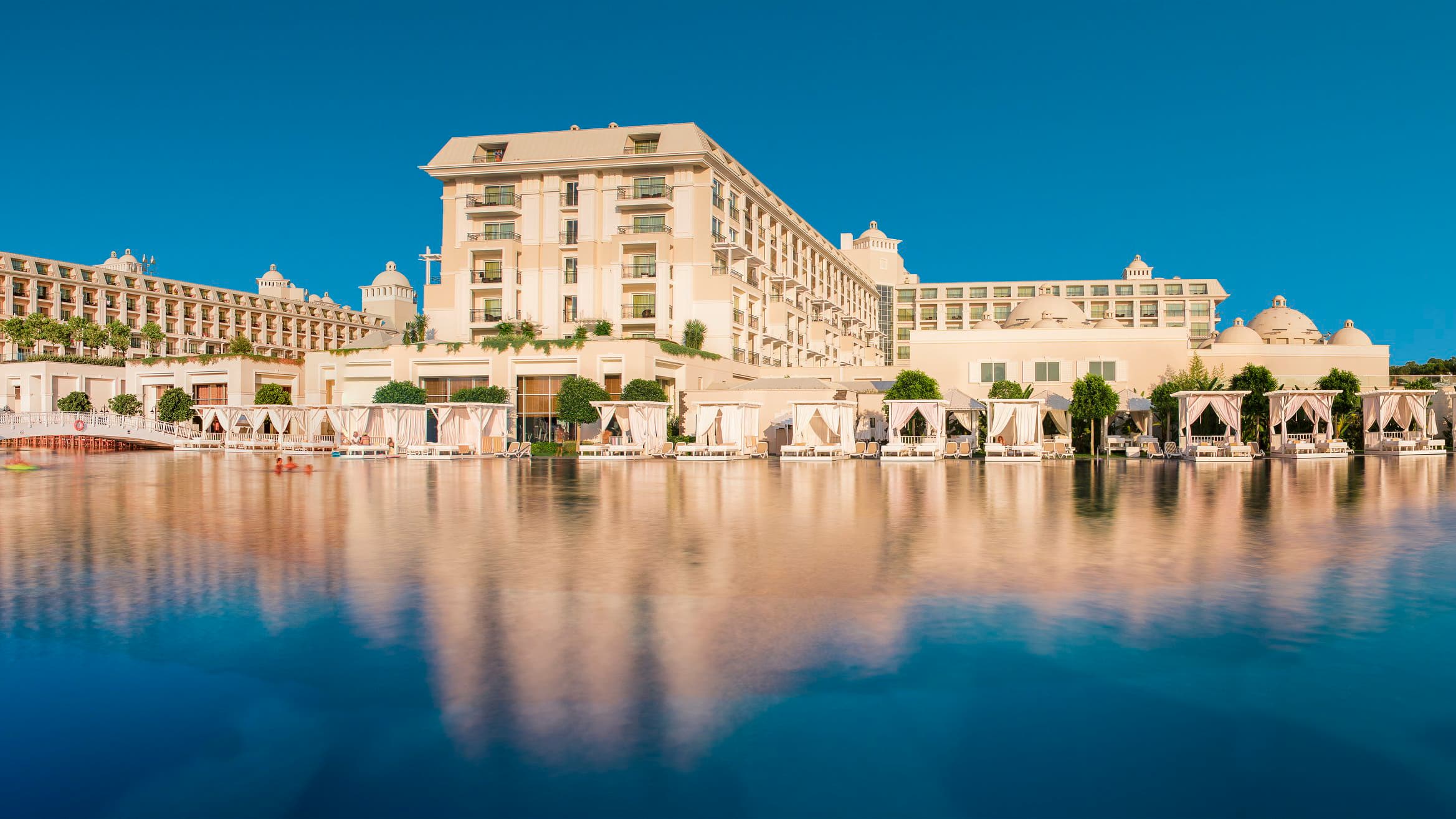 Роскошный курортный отель Titanic Deluxe Belek расположен у реки, в окружении соснового леса. К услугам гостей 9 открытых бассейнов, 2 крытых бассейна, аквапарк с водными горками, а также спа-центр и фитнес-центр с полным спектром услуг. Кроме того, в числе удобств уединенный частный пляж протяженностью 1 км.
