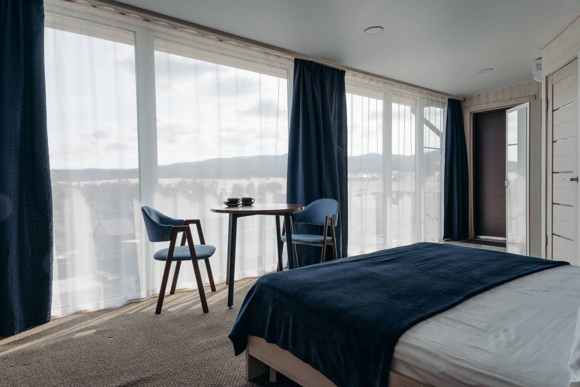 Делюкс Комфортабельные номера площадью 40 метров состоят из гостиной, гардеробной и спальни. Уникальный светлый и просторный интерьер каждого номера дополнен дизайнерской мебелью, зеркалами и оригиналами авторских картин.