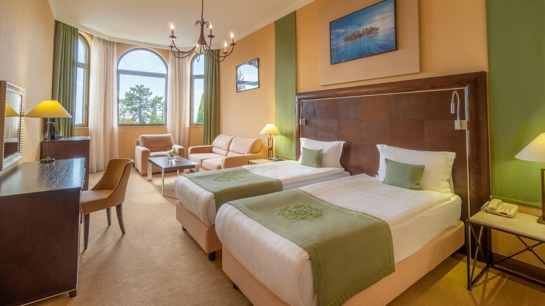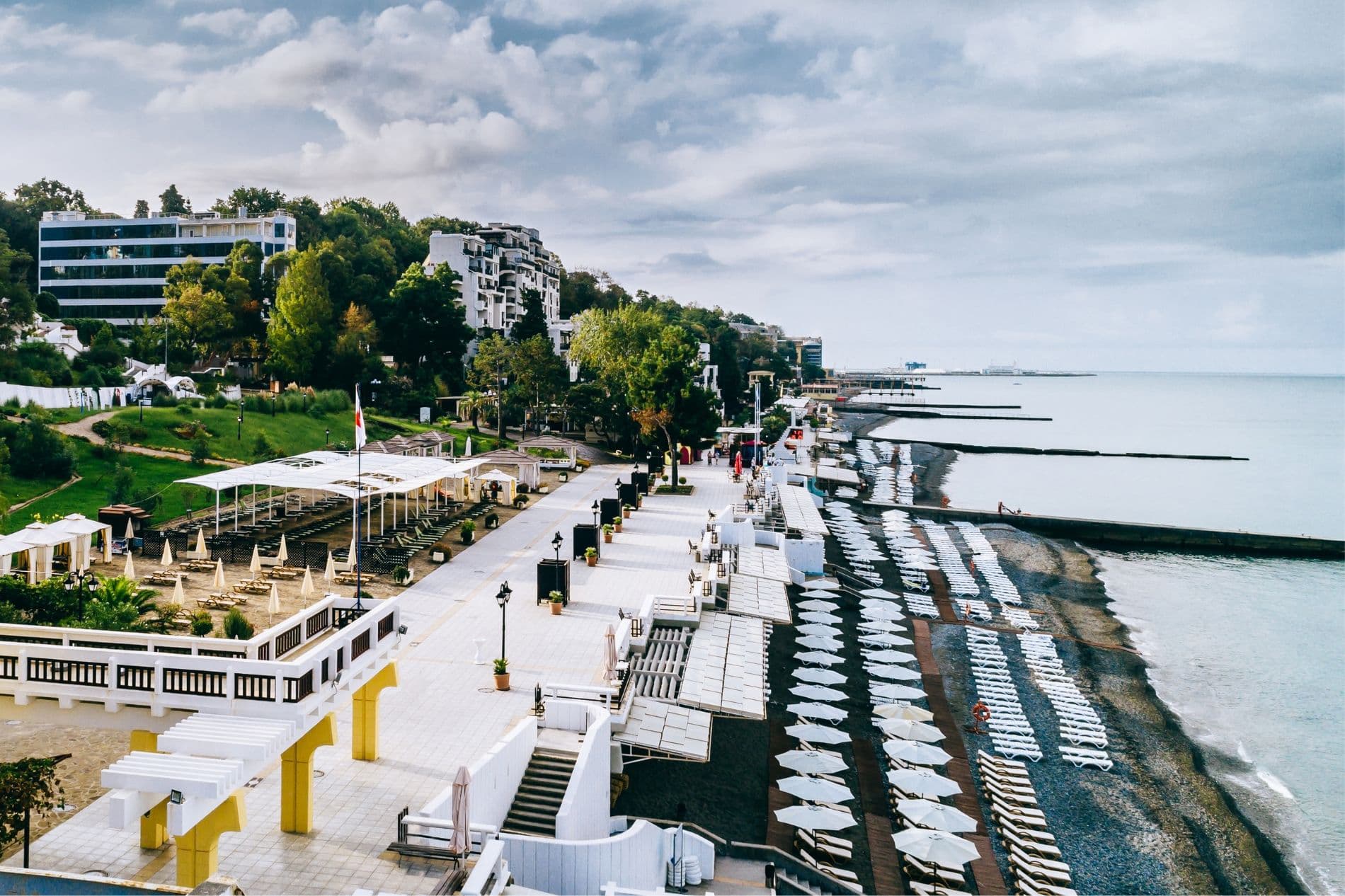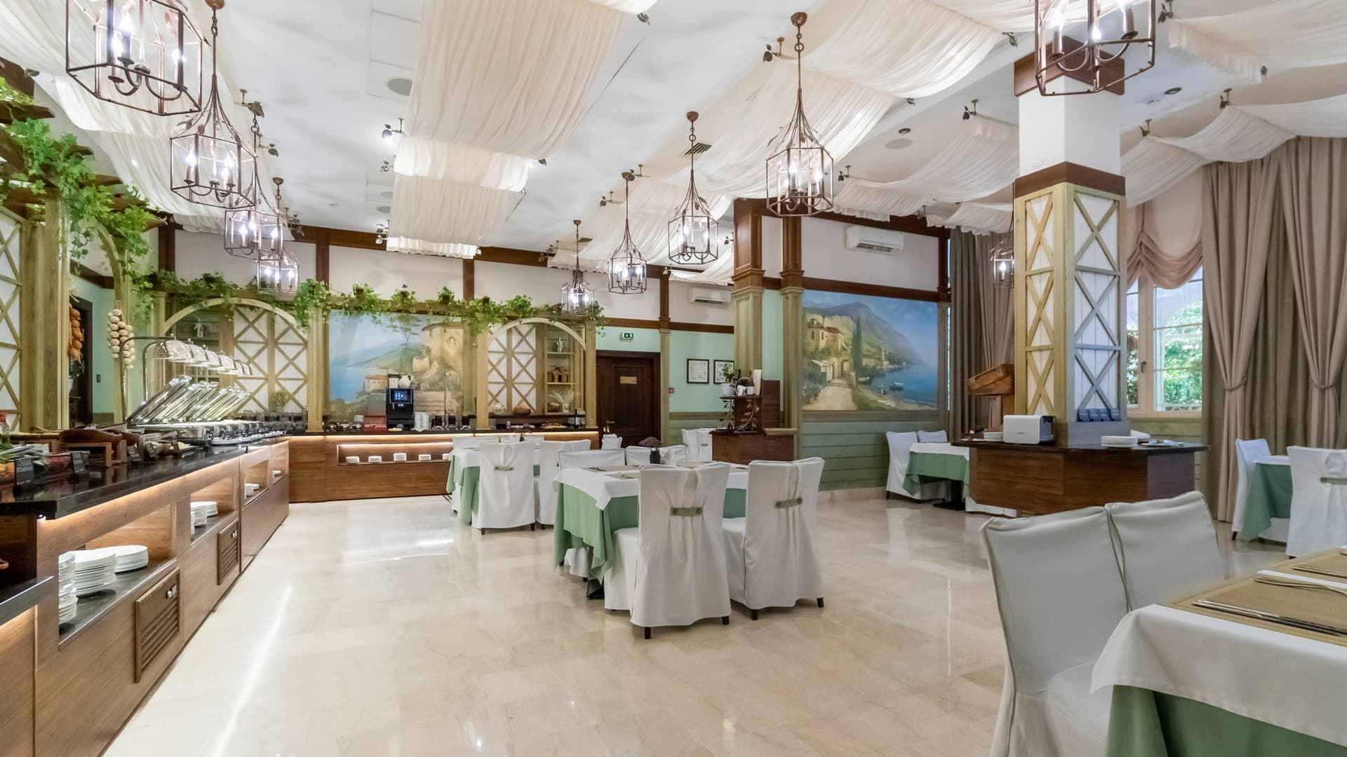 42 номера, 3 коттеджа, 4 виллы, 3 ресторана, 4 бара, частный галечный пляж (в 250 м от отеля, спуск по лестнице или на лифте), открытые бассейны (в том числе один - только для гостей вилл), открытые детские бассейны, закрытый бассейн для занятий аквааэробикой, SPA-центр, медицинский центр (в санатории «Заполярье»), 2 тренажерных зала, спорт и водный спорт, детский центр, клуб для подростков, бизнес-центр, парковка.