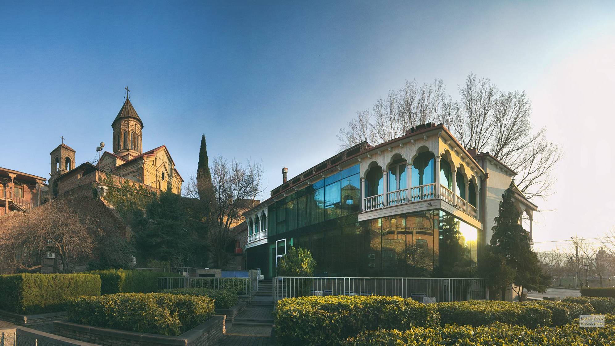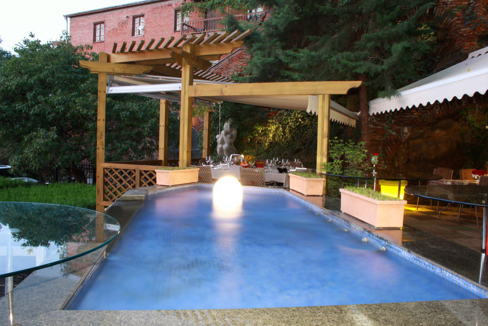 Хамам люкс: Роскошный 100 кв. м. люкс включает в себя хамам (парная сауна), антикварный французский камин, уникальную античную деревянную мебель «Птичий глаз» и мебель из орехового дерева, звуконепроницаемые окна, затемняющие шторы, полы из твердой древесины, рабочий стол, два стола, диваны, два кресла, гардеробы/шкафы и два широких балкона с красивым видом на реку Куру и сад, кровать шириной в два метра, раскладной в двухместную кровать диван, обе кровати с матрасами из чистого латекса, вручную украшенные стены. Эта комната идеально подходит для семьи или любого, кто ищет роскошь и пространство: просторная ванна, отдельный душ и туалет для гостей рядом с хамамом.