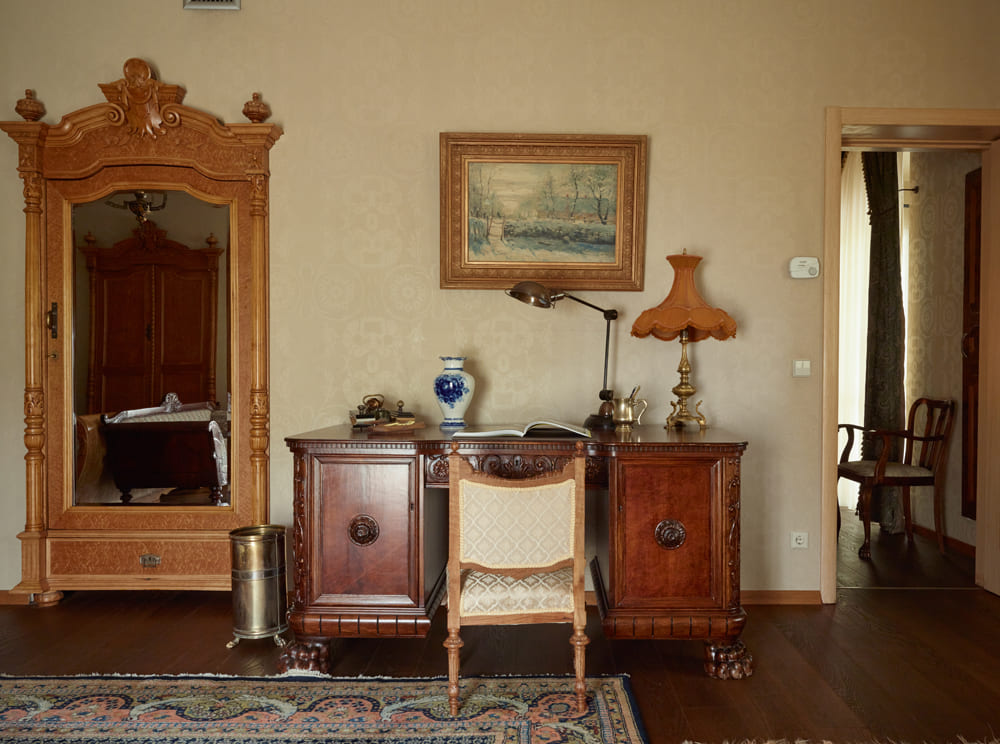 Янтарный полулюкс: Угловая комната с окнами от пола до потолка, соединяющиеся балконы на набережную и в сад, античная мебель из карельской березы, крупноразмерная кровать внутри со специальной технологией, делающей кровать невероятно комфортной, матрас из чистого латекса, рабочий стол, диван, гардероб/шкаф, пол из твердой древесины, антикварные дагестанские ковры, вручную украшенные стены, полностью оснащенная ванная комната.