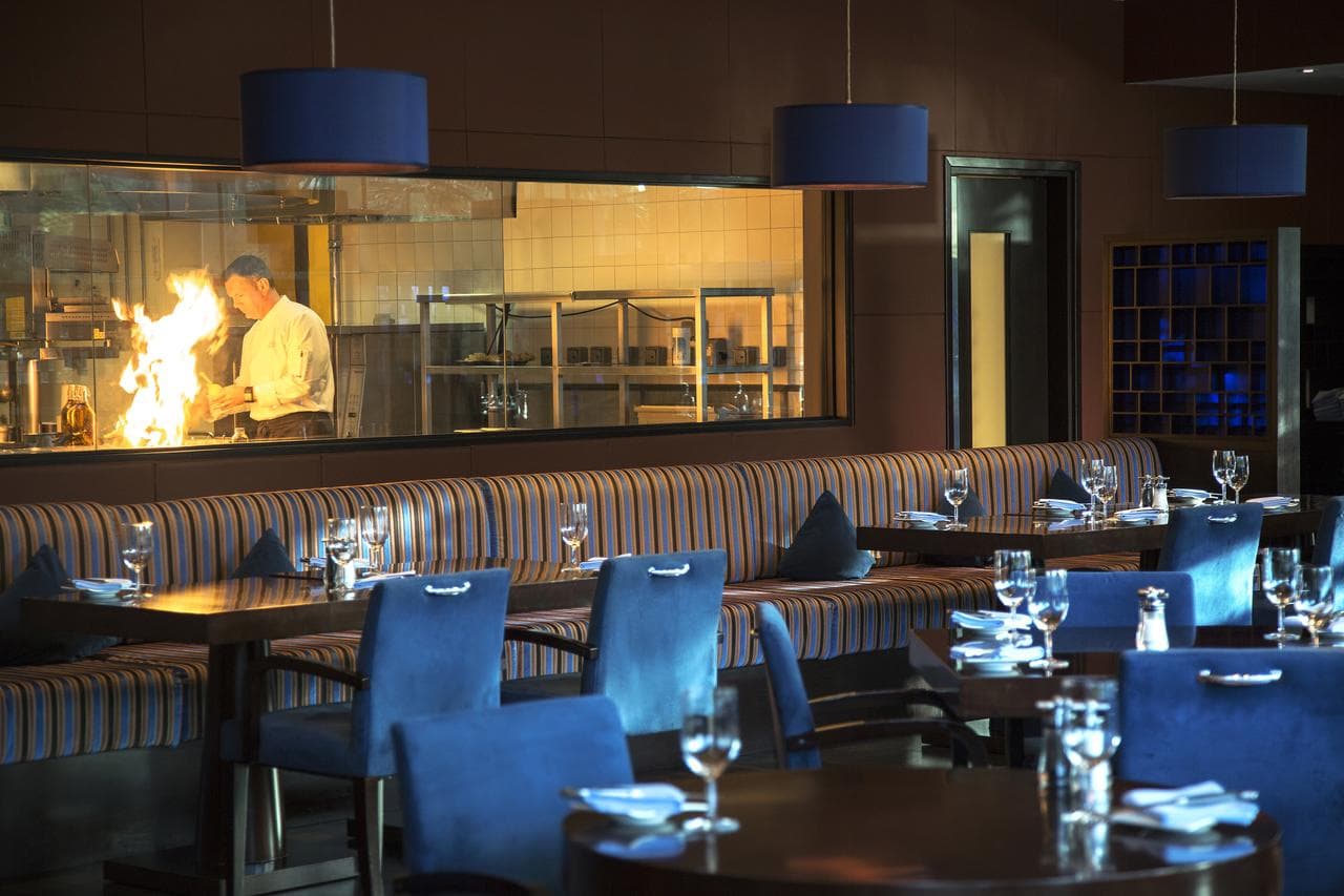 Гости могут отведать самые разнообразные кулинарные изыски в эксклюзивных кафе и ресторанах курортного отеля, в том числе стейк-хаусе Blue Grill, индийском ресторане Rangoli, спорт-баре Y Bar, баре у бассейна Aquarius, круглосуточном ресторане Choices и лобби-лаундже Island.