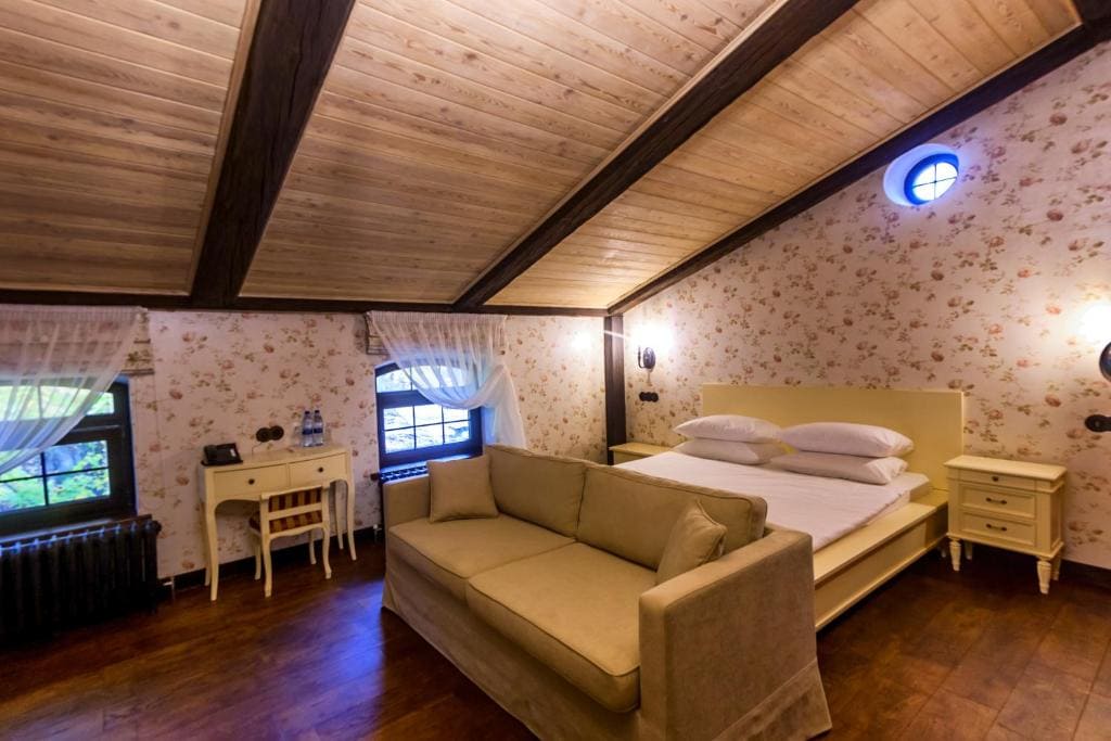 2-местный джуниор-сьют (гост. дом) (макс. 2+1 чел., Wi-Fi, телевизор, душ, умывальник, фен, мини-бар, телефон, мягкая мебель, туалет). Доп. место - диван-кровать, может быть установлен без ограничения по возрасту.