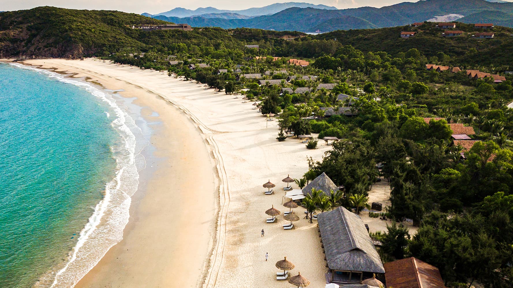 Расположен на белоснежном частном пляже в окружении зелени, в 33 километрах от аэропорта Куинён.