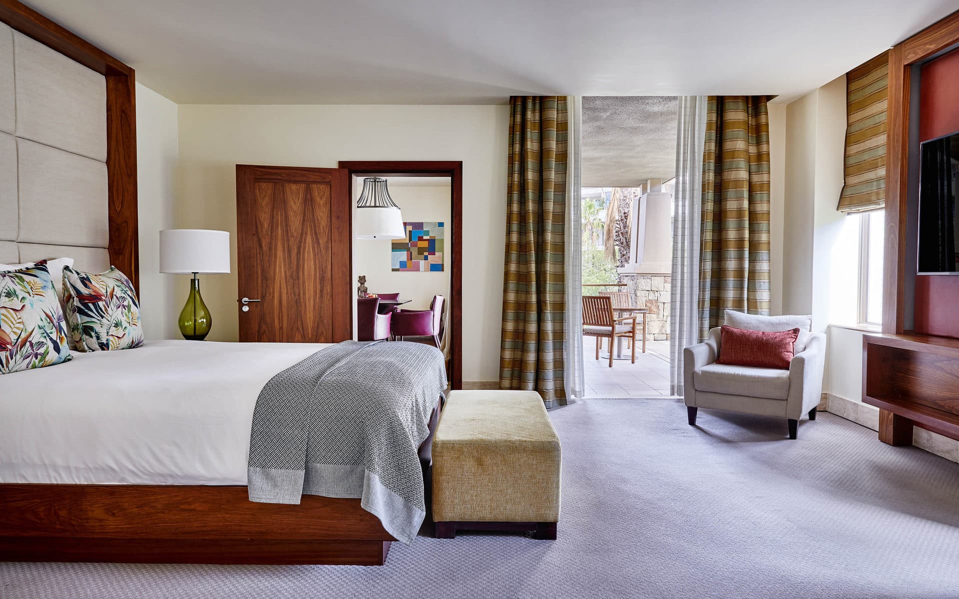 Table mountain suite one-bedroom (316 кв. м). 2 балкона, прихожая, гостиная с обеденной зоной (стол на 12 персон), кухня, кабинет, спальня с кроватью king-size, гардеробная, тренажерный зал, 2 ванные комнаты (одна – с ванной и душевой кабиной, вторая – с душевой кабиной), гостевой туалет. Расположены в корпусе Marina Rise. Услуги персонального камердинера. Возможно объединение с номером категории Marina room с двумя кроватями queen-size.