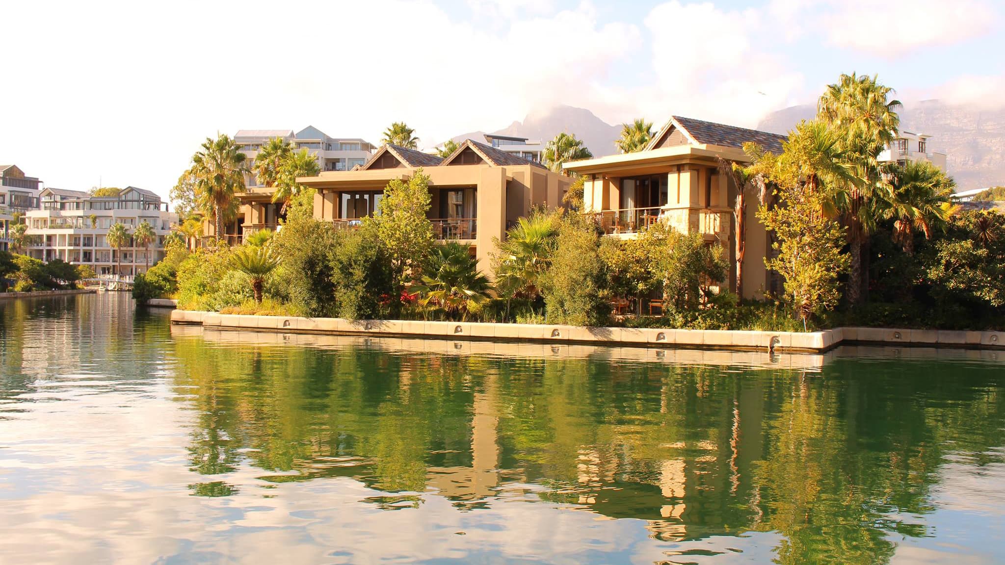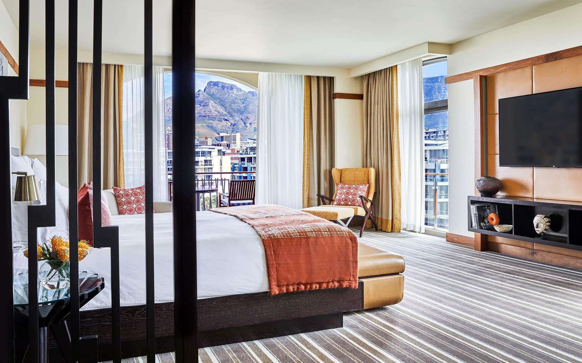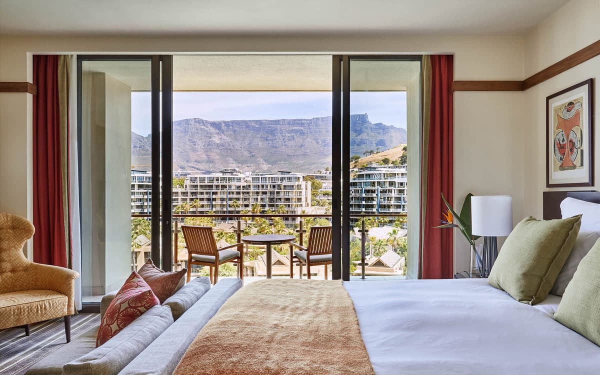 Marina Table mountain room (63 кв. м). Балкон, прихожая, спальня с кроватью king-size или 2 кроватями queen-size, ванная комната с ванной и душевой кабиной с функцией «тропический дождь». Расположены в корпусе Marina Rise. Вид на Столовую гору.