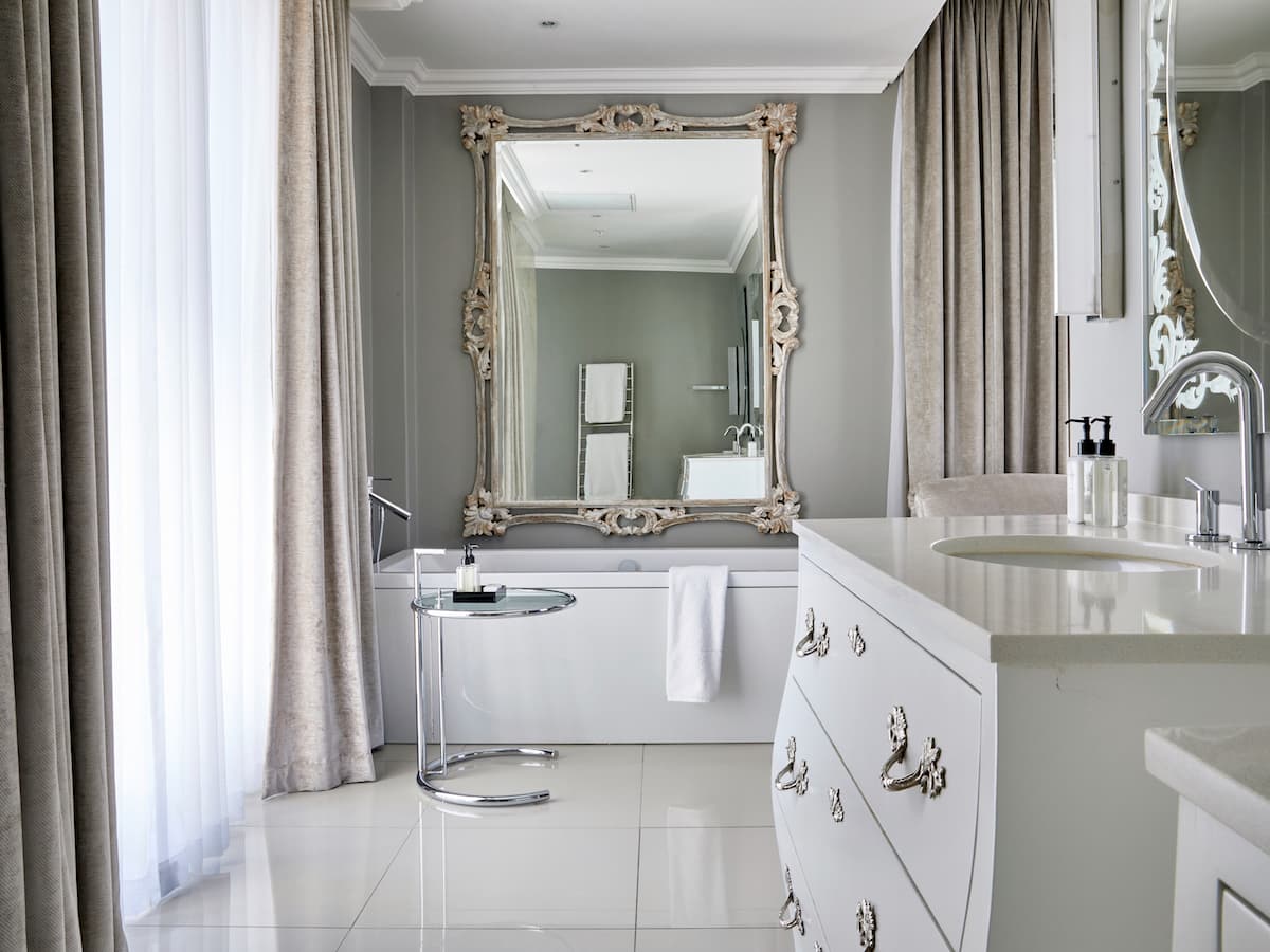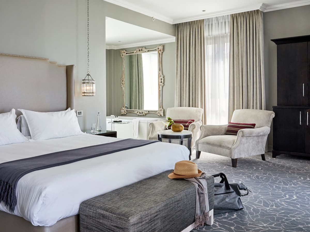 Элегантность и утонченность – так можно описать облик роскошного Queen Victoria Hotel. Во внешнем оформлении отеля преобладают строгие лаконичные линии, а интерьеры выдержаны в изысканном современном стиле. Лобби оформлено в контрастных, мраморно-белых и фиолетовых тонах, а в номерах преобладают сдержанные пастельные цвета. Для самых взыскательных гостей предусмотрены три номера категории suite, каждый из которых оборудован балконом, откуда можно любоваться видом Столовой горы или наслаждаться тишиной уютного внутреннего дворика.